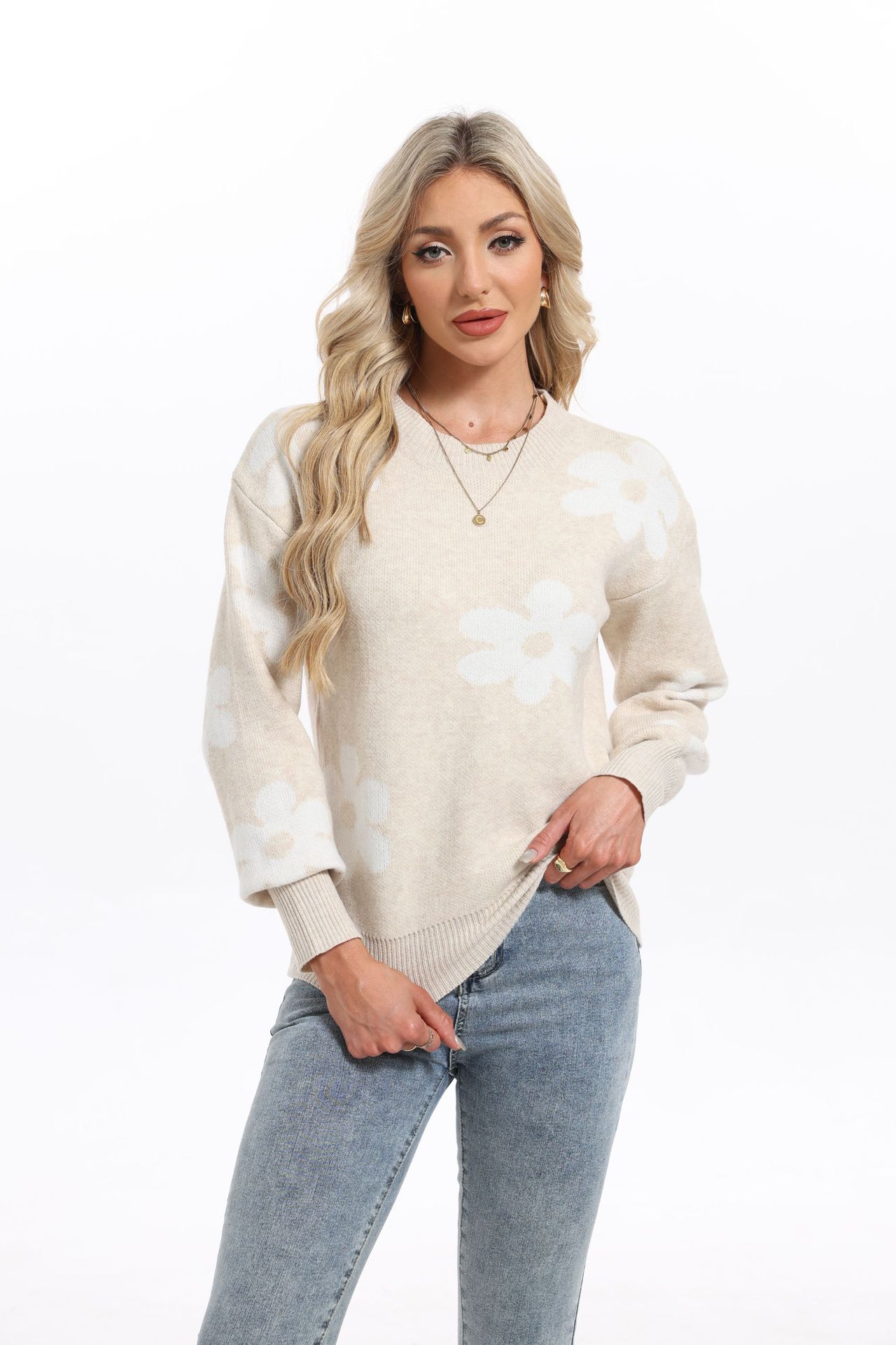 Autumn And Winter New Knitwear Blouse Loose Flowers Collar Collar Sweater Women's Clothing HZ1208