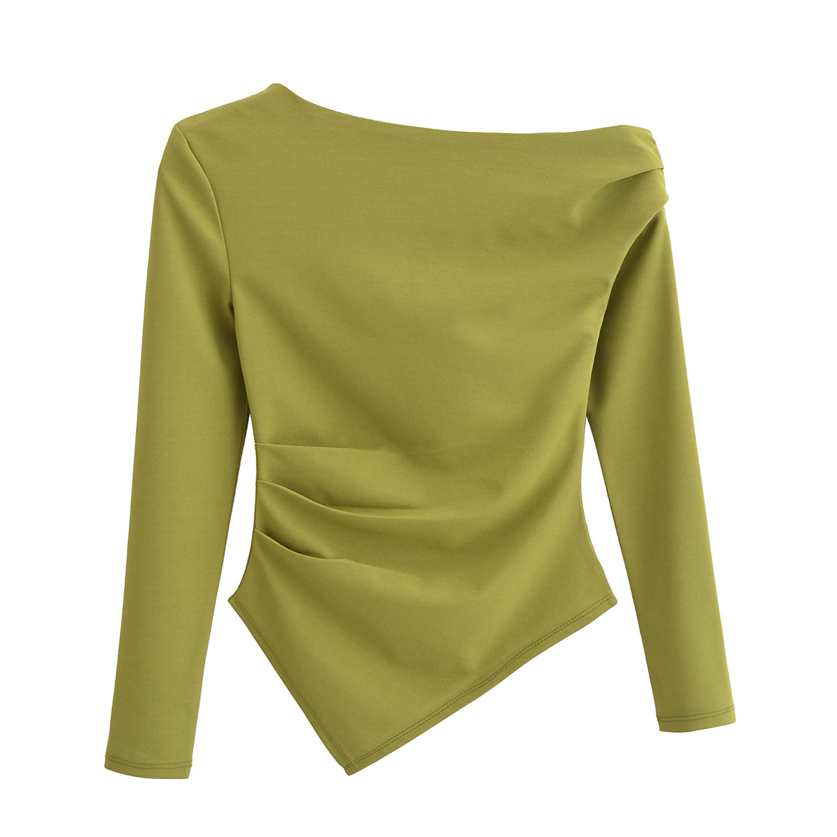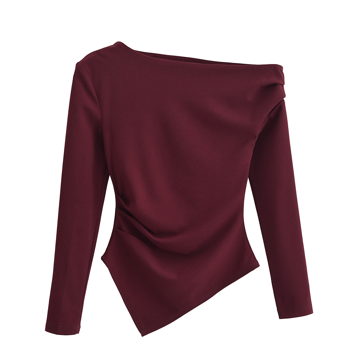Autumn New Asymmetrical Elastic Repair Fashion Blouse 3644328 HZ1208