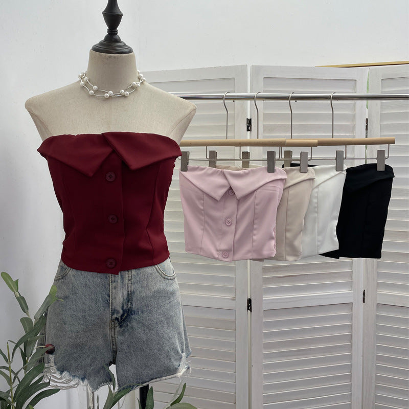 Half-High Collar Hanging Neck-Laught Sling With Metallic Luster Repair Vest Outside The Hot Girl Trend Girl Dress HZ1208