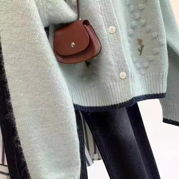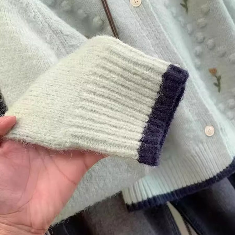 Fashion Sweet Embroidery Flowers Soft Sticky Cardigan Women Autumn And Winter New Loose Temperament Sweater Small Fragrant Wind HZ1208
