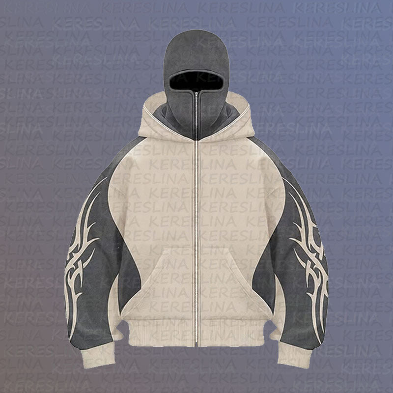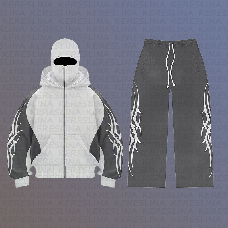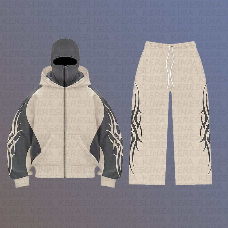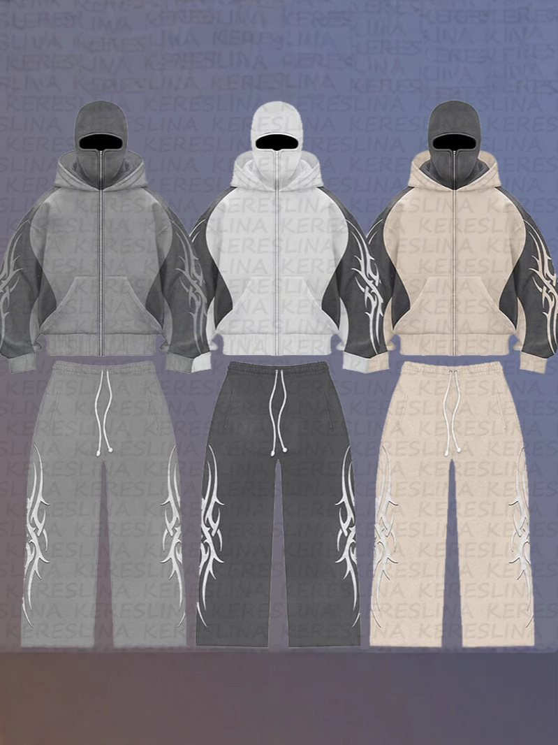 High Street Color Double Hat Design Letter Hooded Cardigan Autumn And Winter Loose Y2K Sweater Set HZ1208