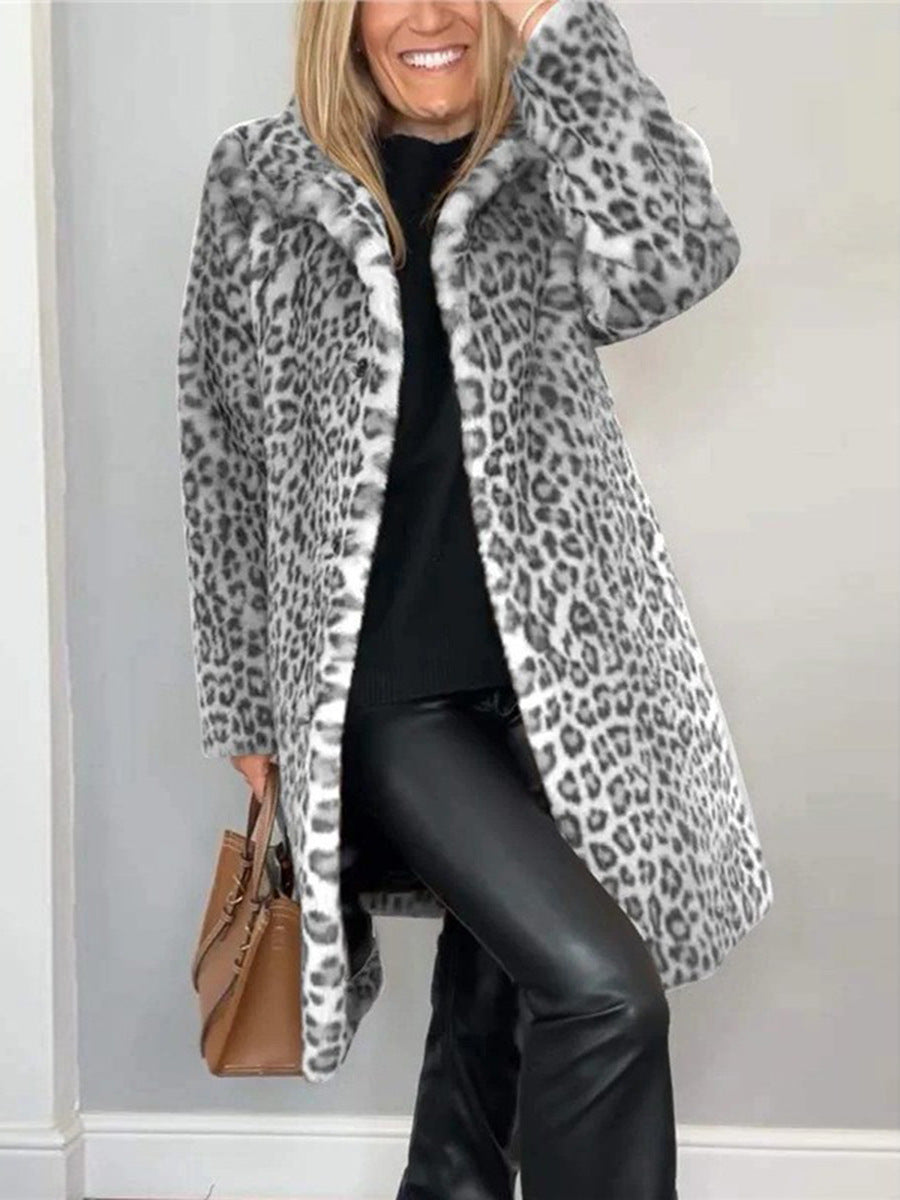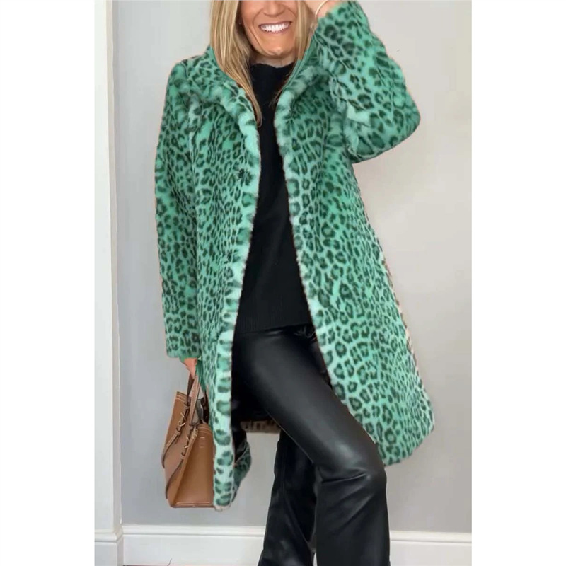 Autumn/Winter 2025 Fashion Leopard-Print Warm Plush Long Coat HZ1208
