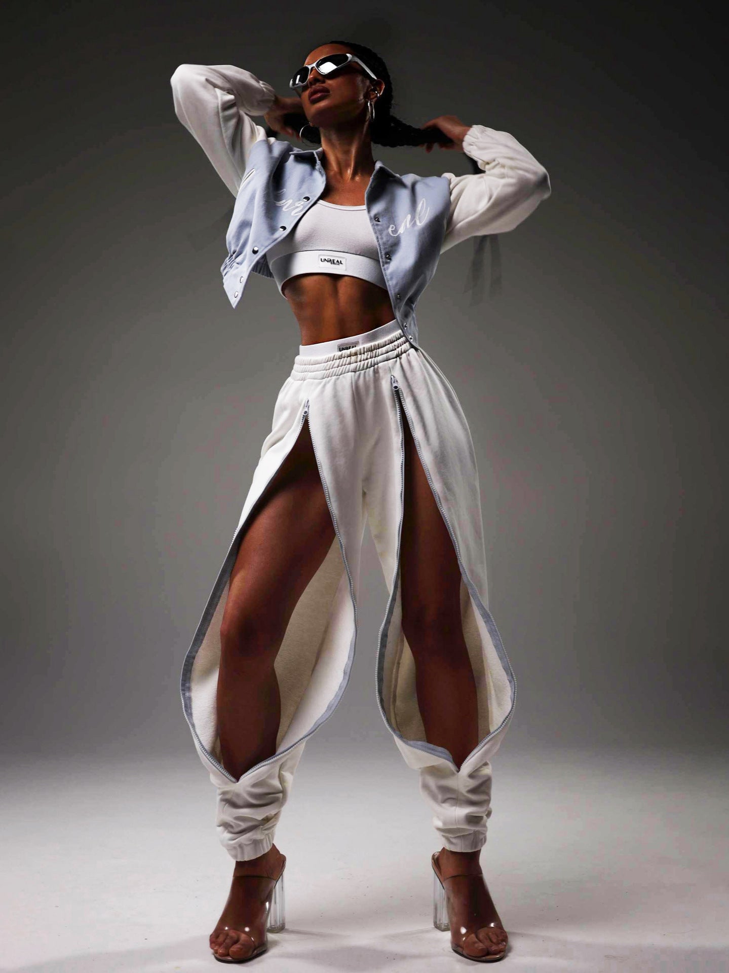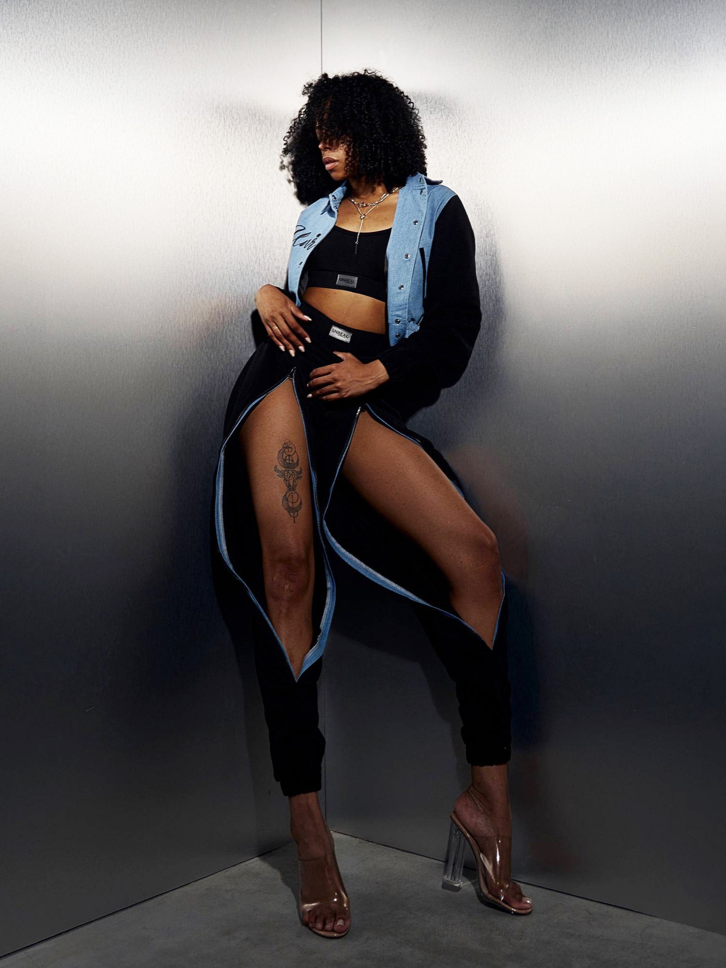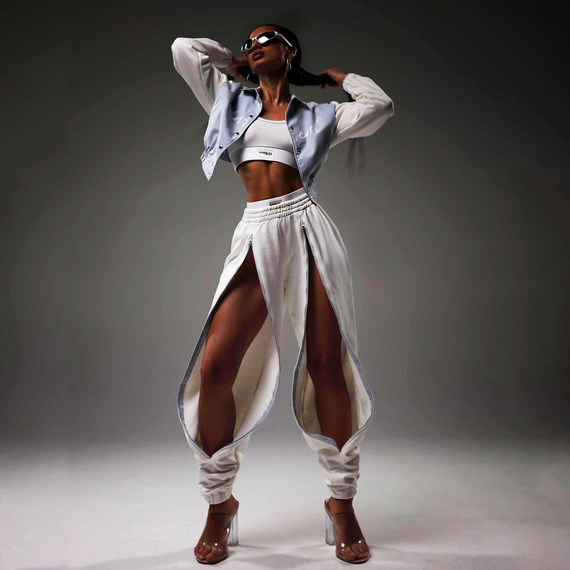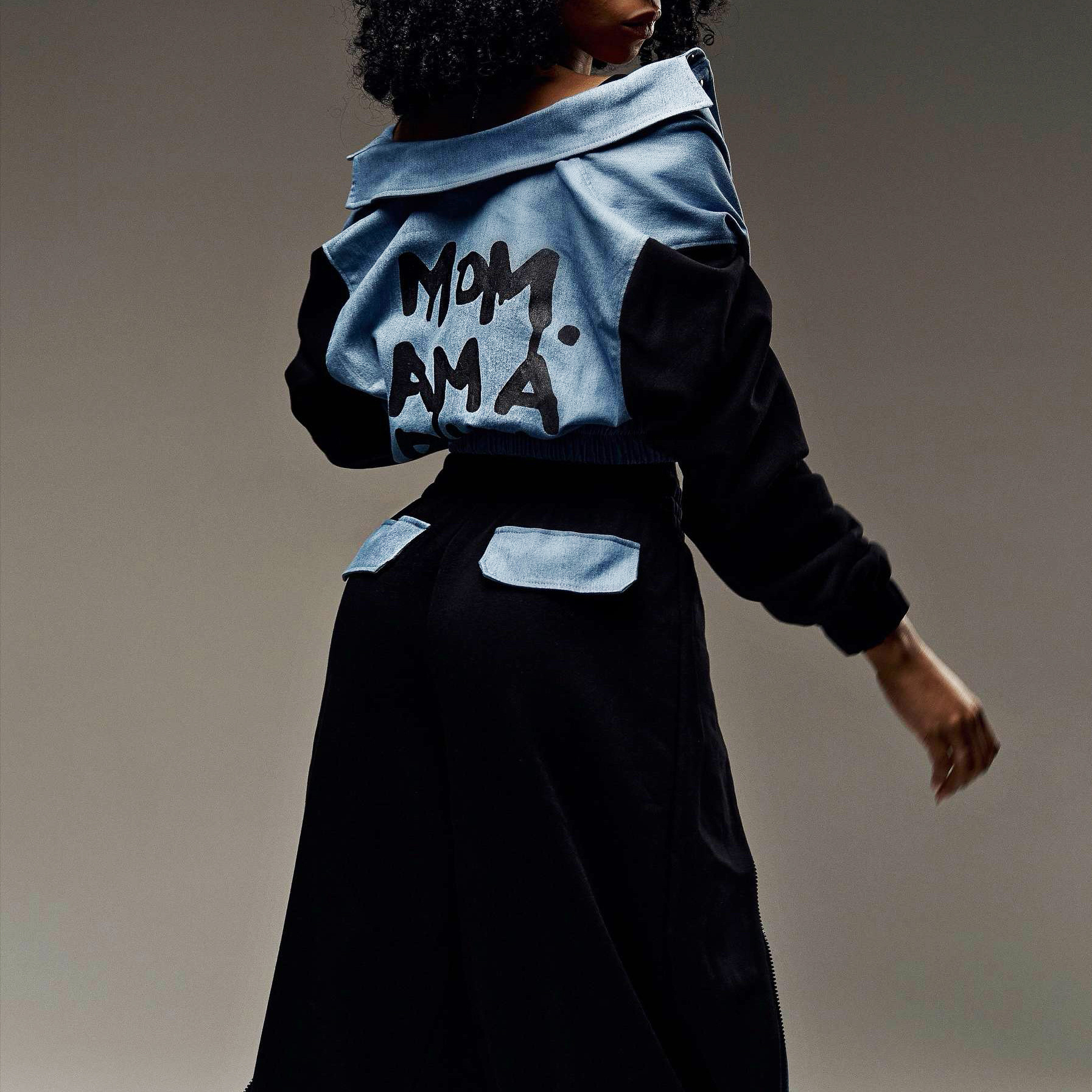 Cowboy Splicing Suit Girl T-Tie Zip Open Trousers Letter Print Short Coat Street Tide Brand HZ1208