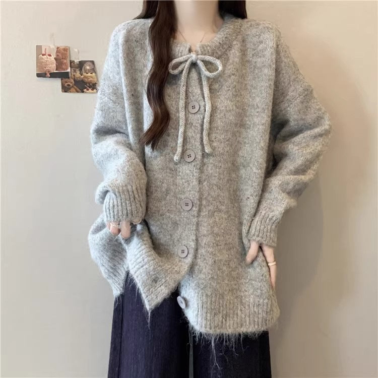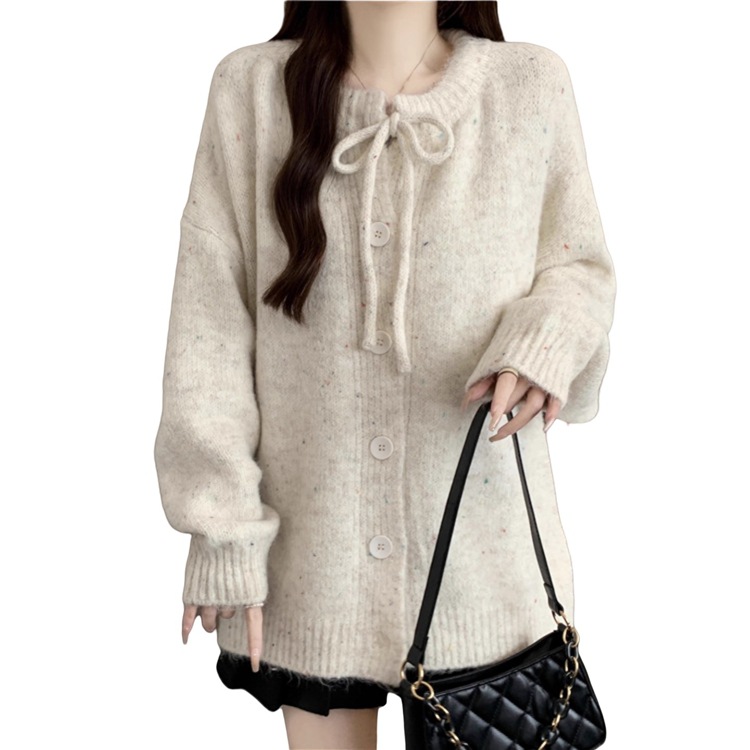 Korean Gentle Style Color Spot With Soft Glutinous Sweater Coat Women's Autumn And Winter New Loose Lazy Knitted Open Shirt Top HZ1208