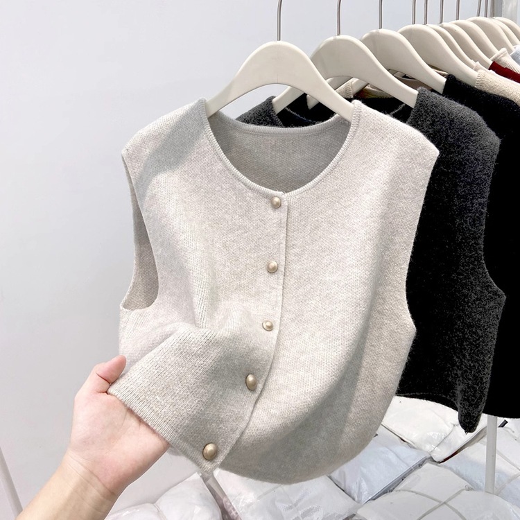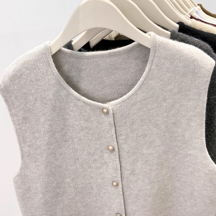 Reunion Old Money Style Casual Folded Round-Necked Vest Vest Women's Winter Sweater Coat Knitted Shoulder Coat HZ1208