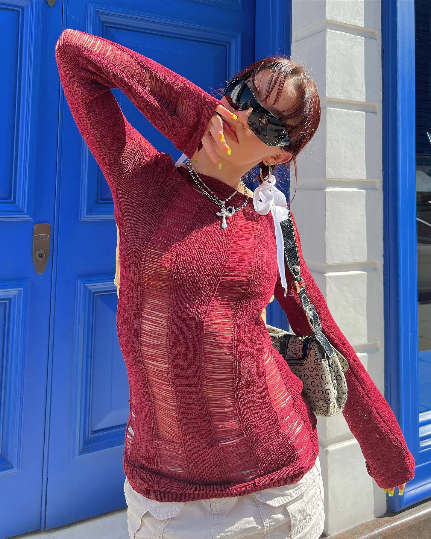 Sweater Women's New Hollow Bare Back Shirt Retro Solid Color Coat On The Head Of The Women's Factory HZ1208