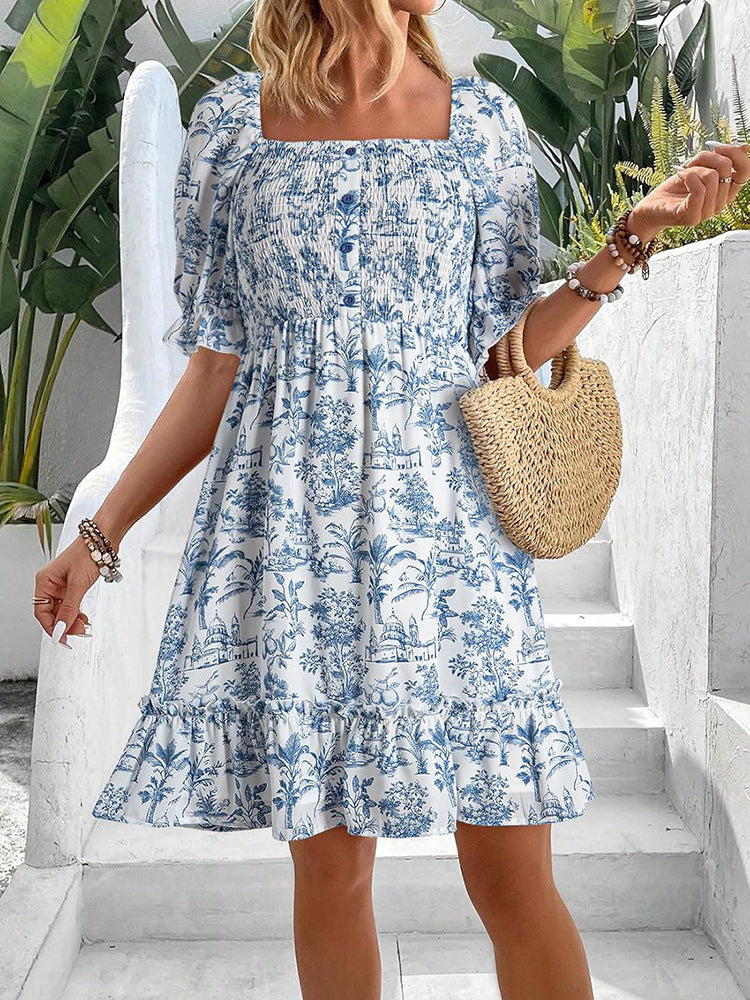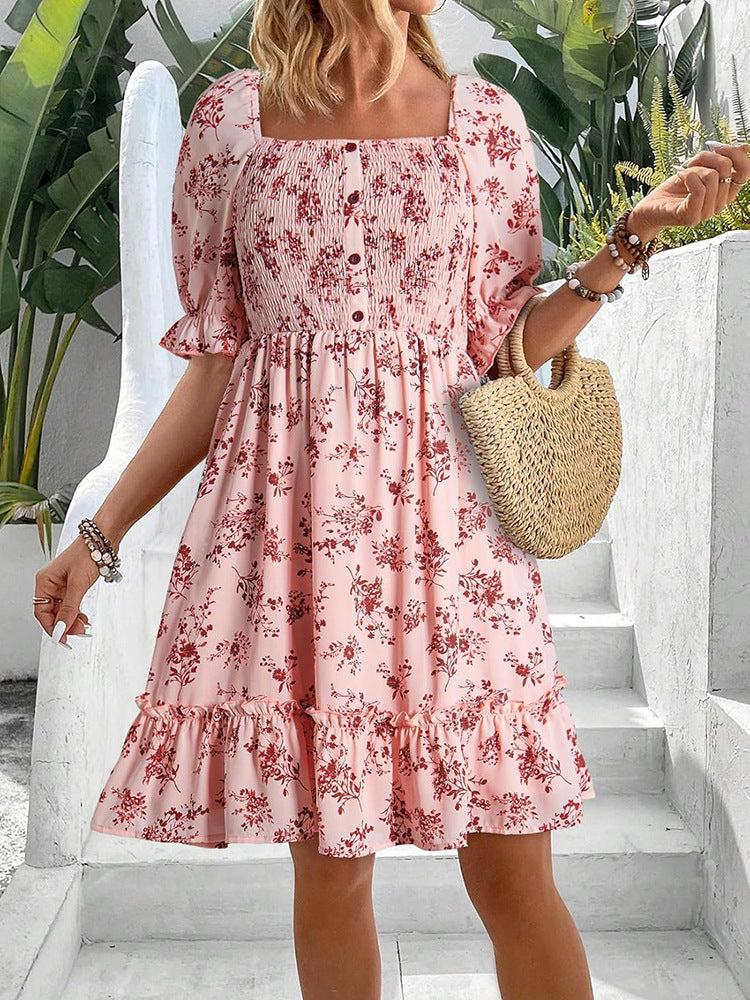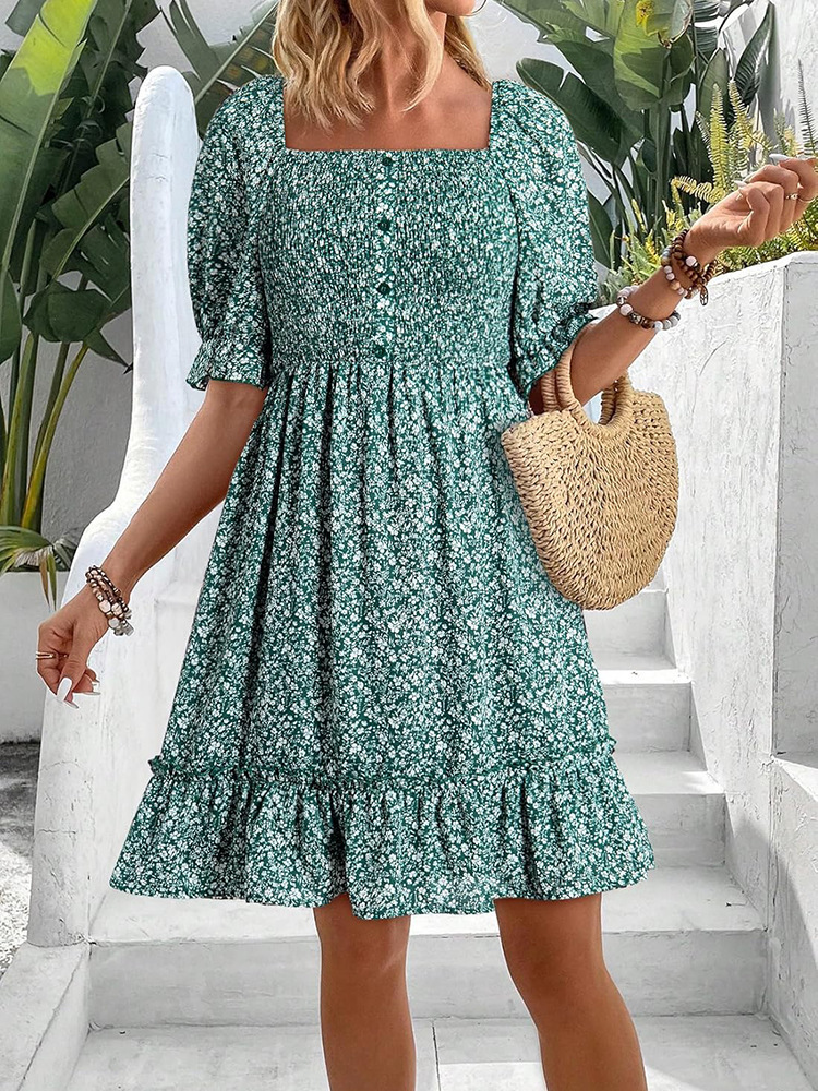2025 Women's Summer New New Ocean Bubble Bubble Sleeves Crush Flower Dresses Women's Dress HZ1208