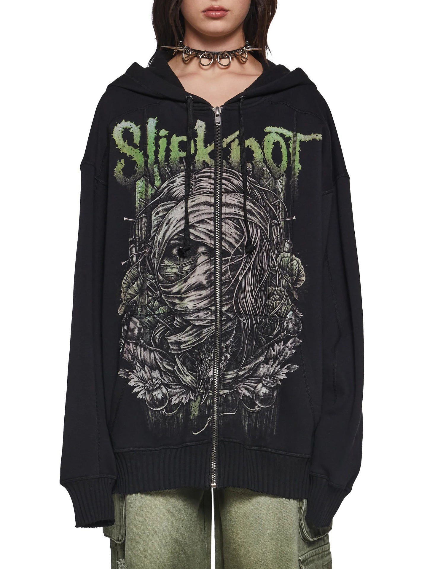 Trend-Print Embroidered Hoodie Hoodie Female Dark Letter Heavy Metal Style To Make Old Texture Zipper Coat HZ1208