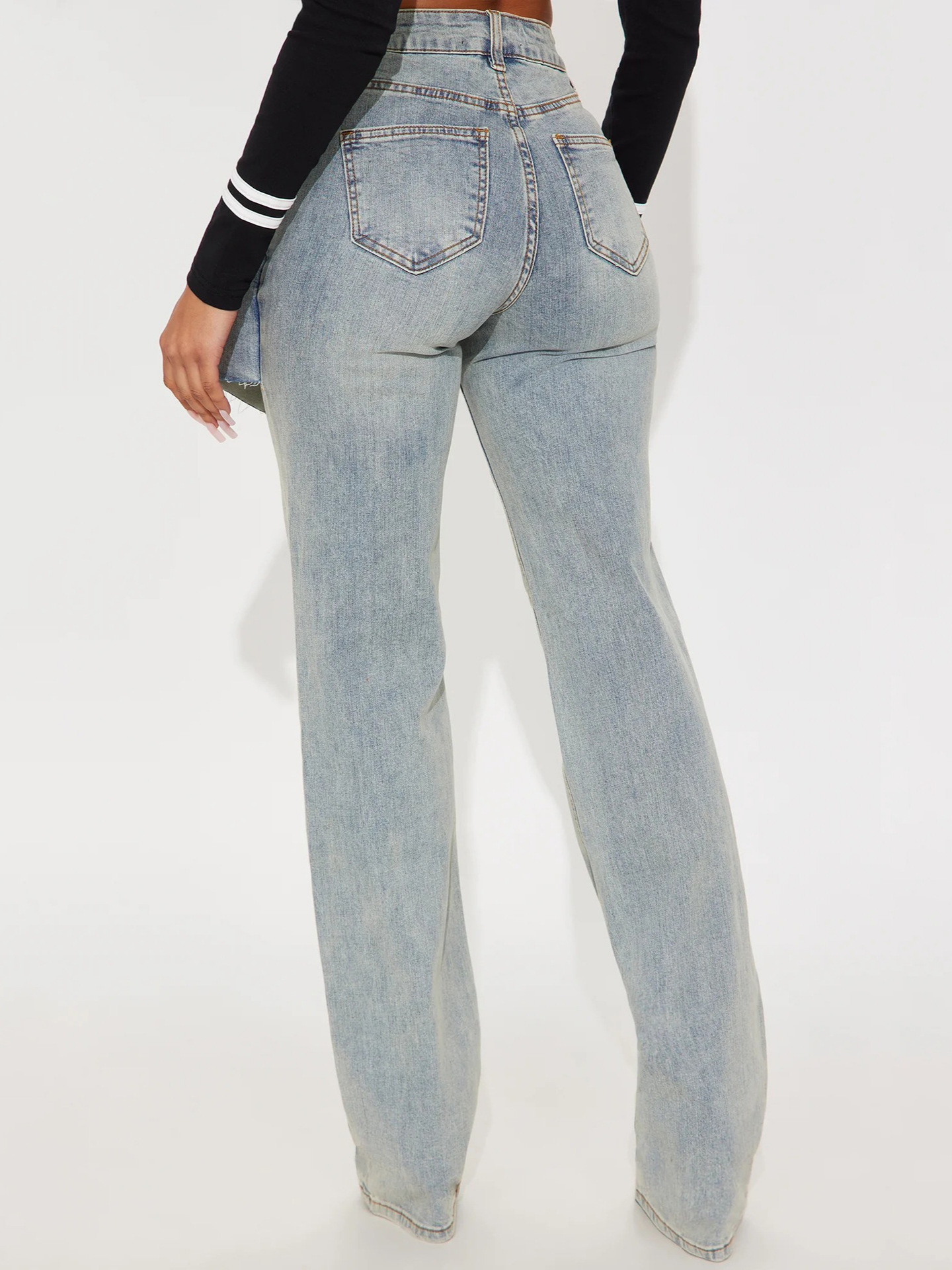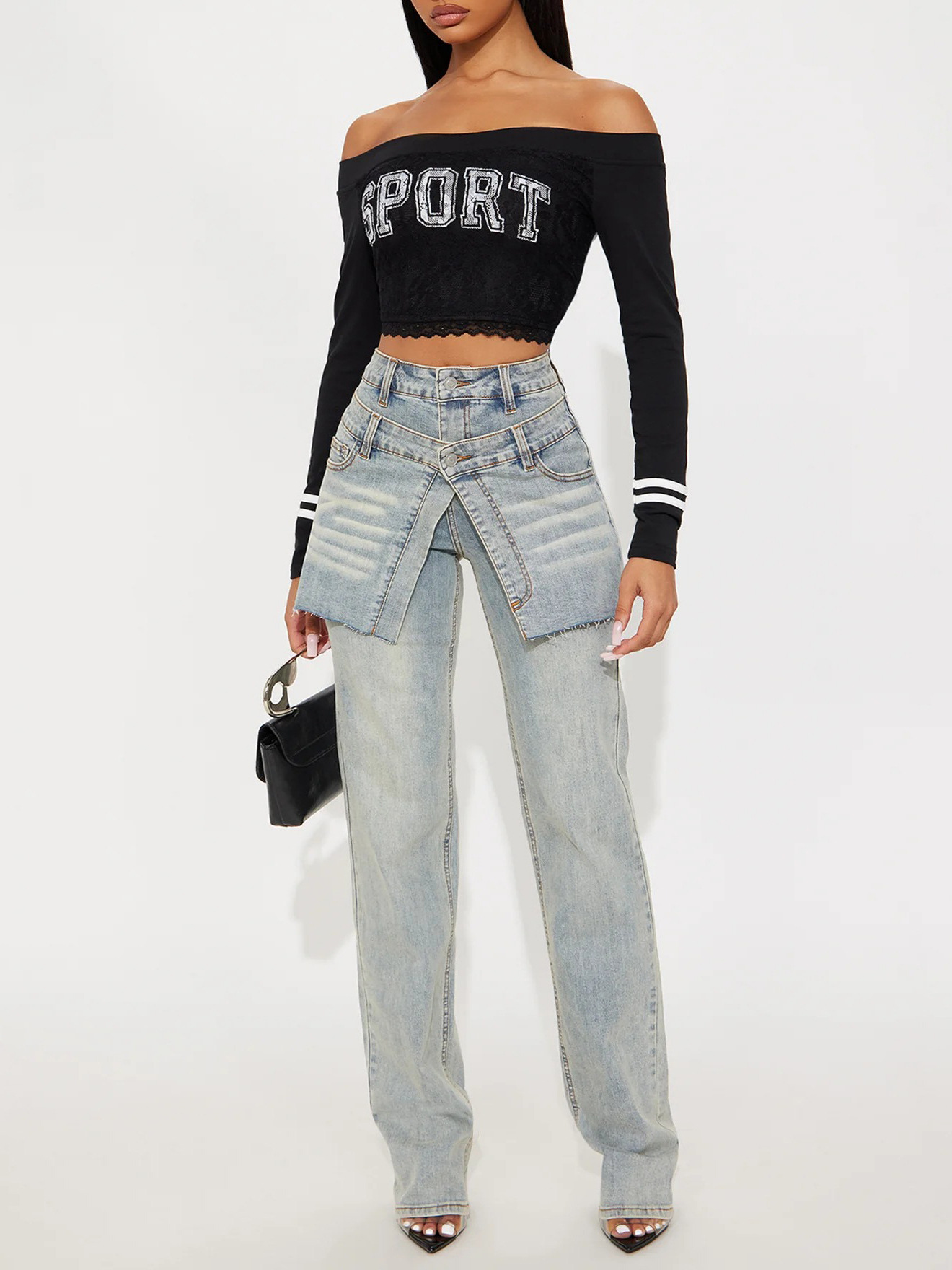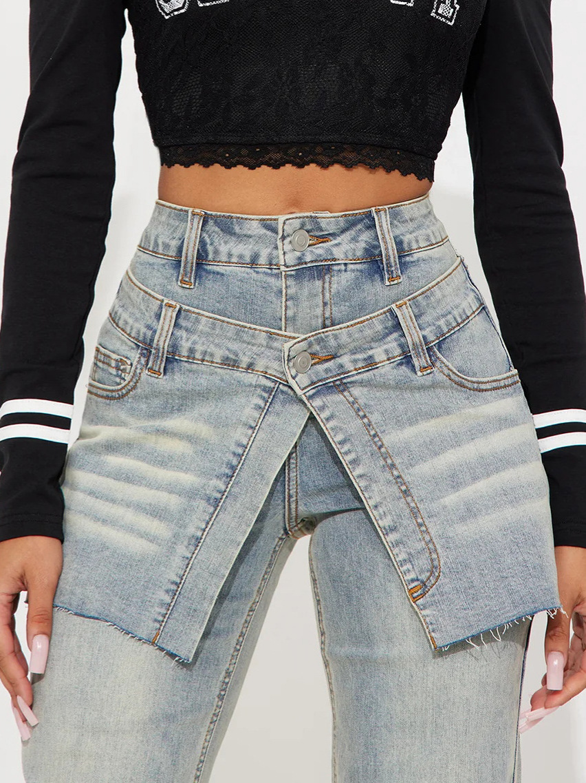 2025 Early Autumn New Hottie Fake Two Low-Waisted Hip Jeans Female Cat Must Wash The Water Hair HZ1208