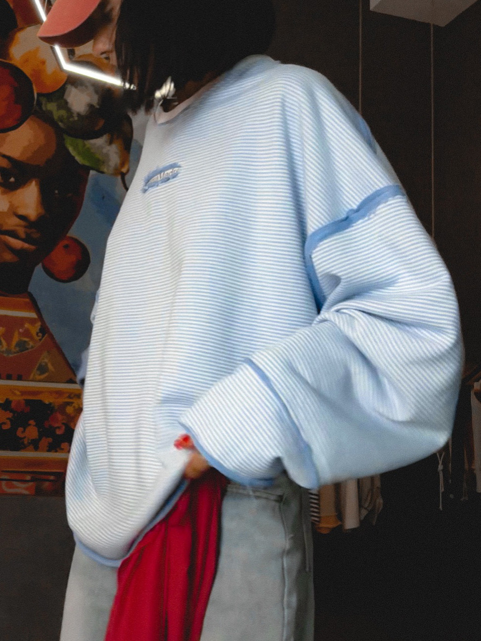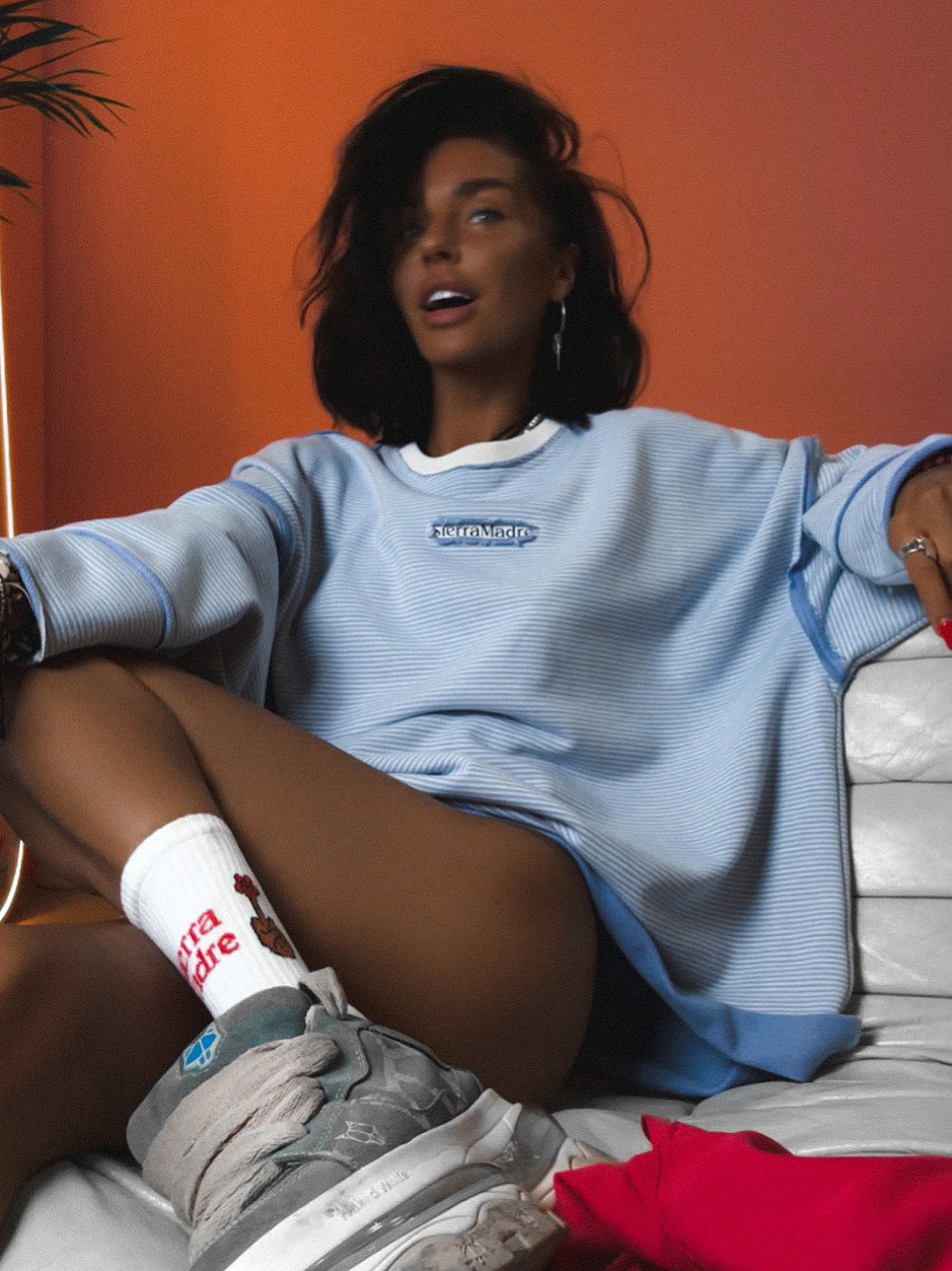 High Street Wind Outside The Stitched Striped Edgy Women Loose Comfortable Lazy Trend Set Long-Sleeved Top HZ1208