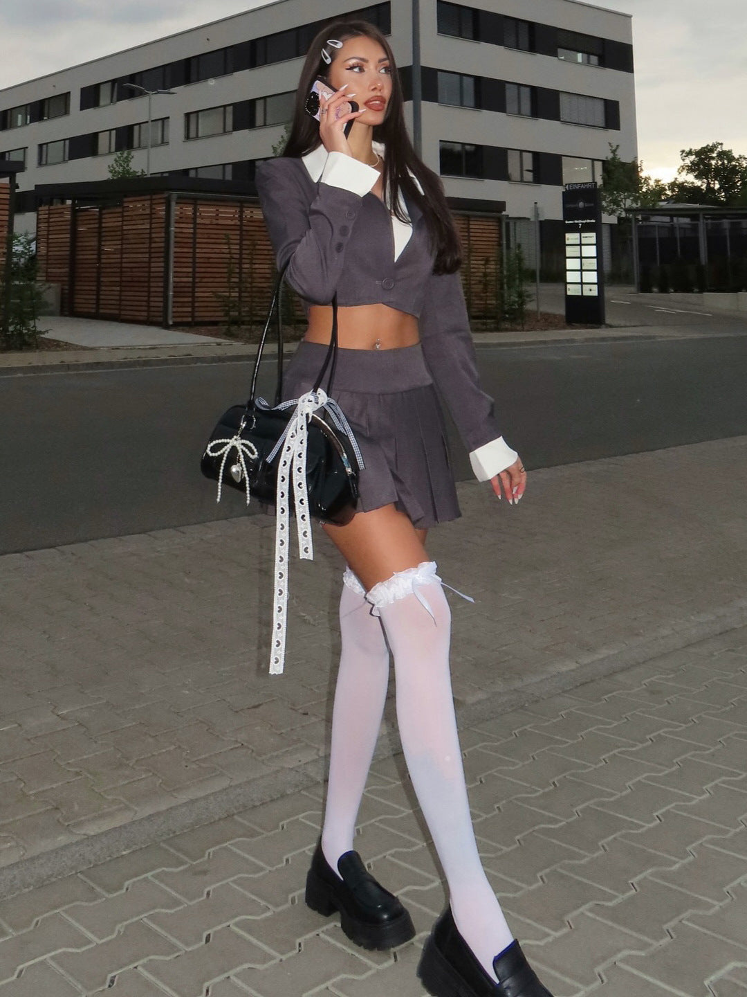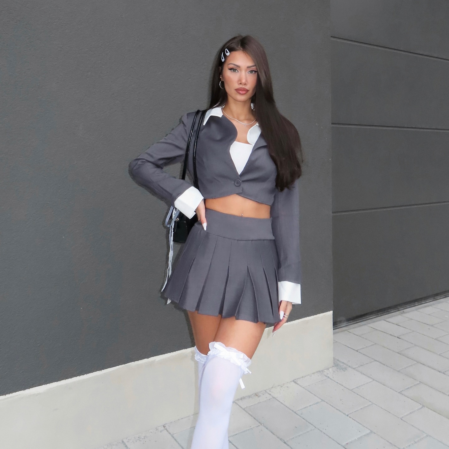 Sweet Girl Wind Flip-Flops Open-Necked Two-Piece Suit 100-Fold Skirt Trend Fashion Summer New Women's Suit HZ1208