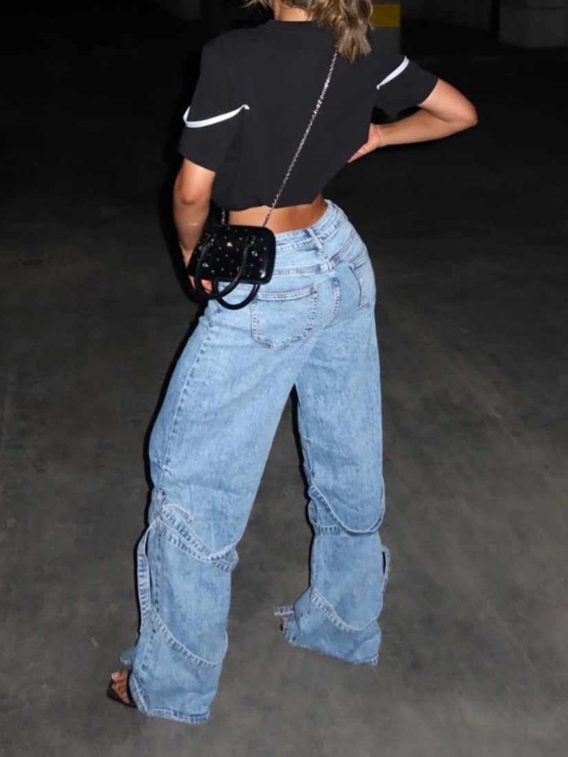 2025 New Water Wash Strap Spliced Straight Jeans Woman