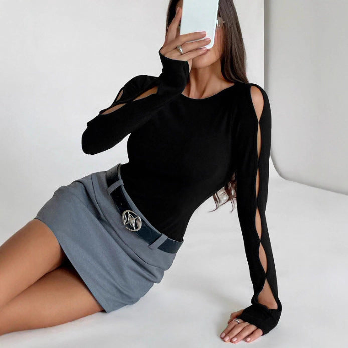 2025 New Long-Sleeved Snowflake T-Shirt Women's Summer Thin Carmeat Round-Neck Loose Temperament Shirt HZ1208