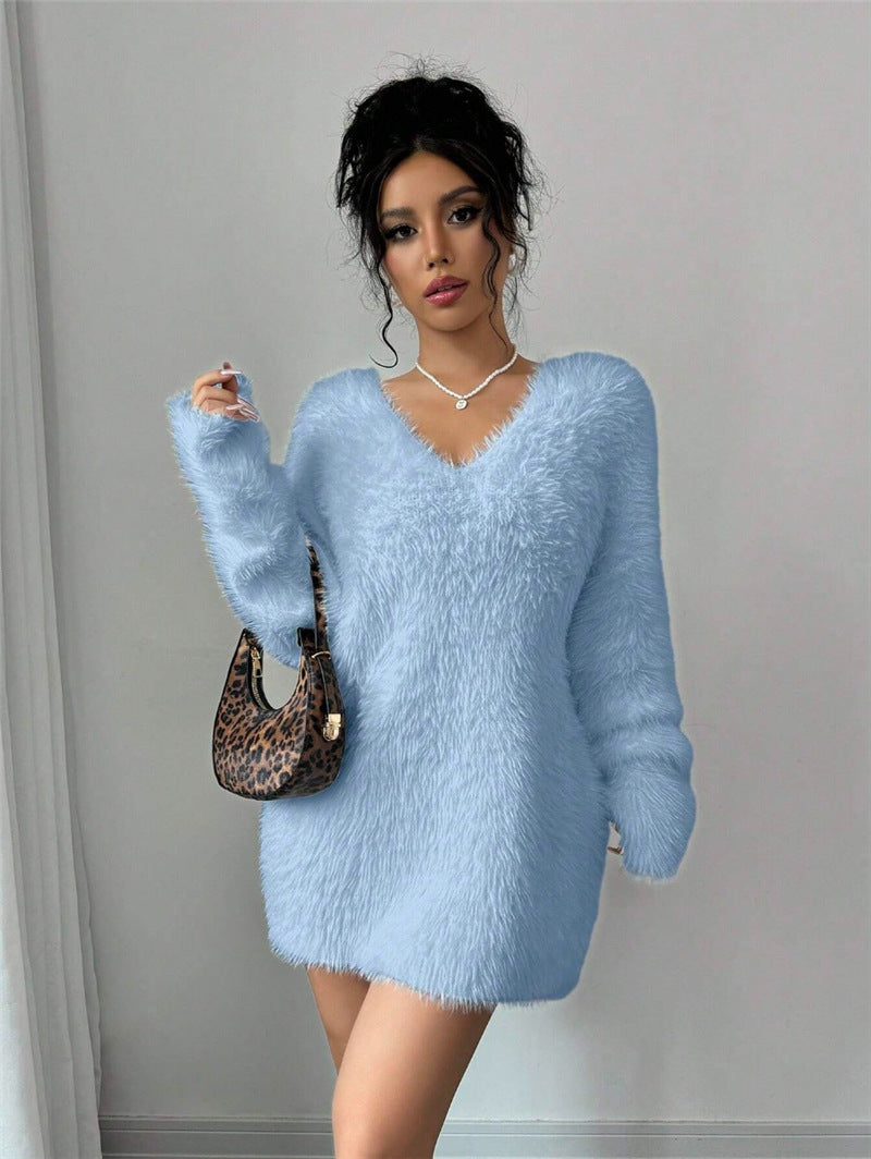 2025 Autumn And Winter New V Collar Wear Loose Lazy Breeze Knitted Sweater Skirt HZ1208