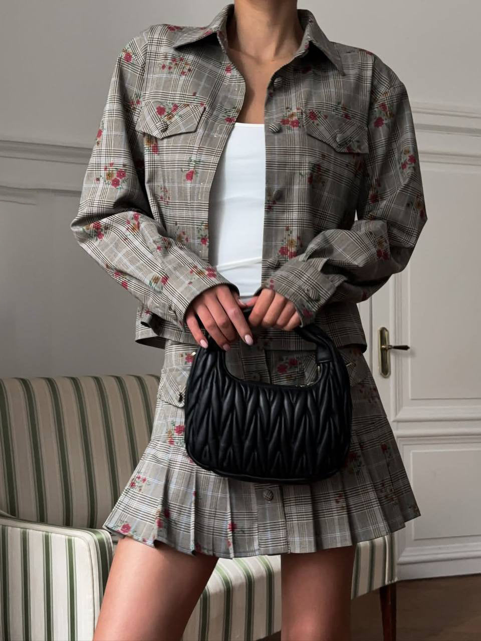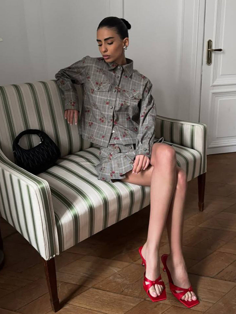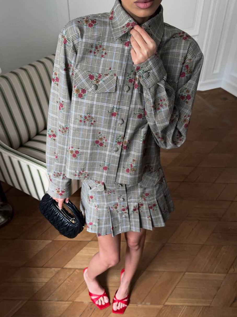 Exploding Plaid-Print Set Shirt-Style Jacket With Hundreds Of Folded Skirt Autumn And Winter Crumuml Flower Design Sweet Retro Woman HZ1208