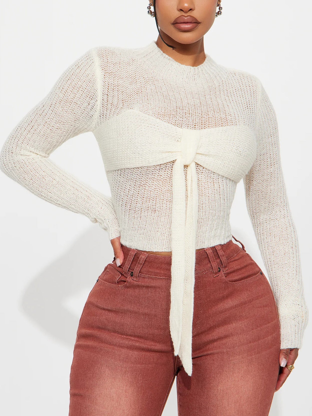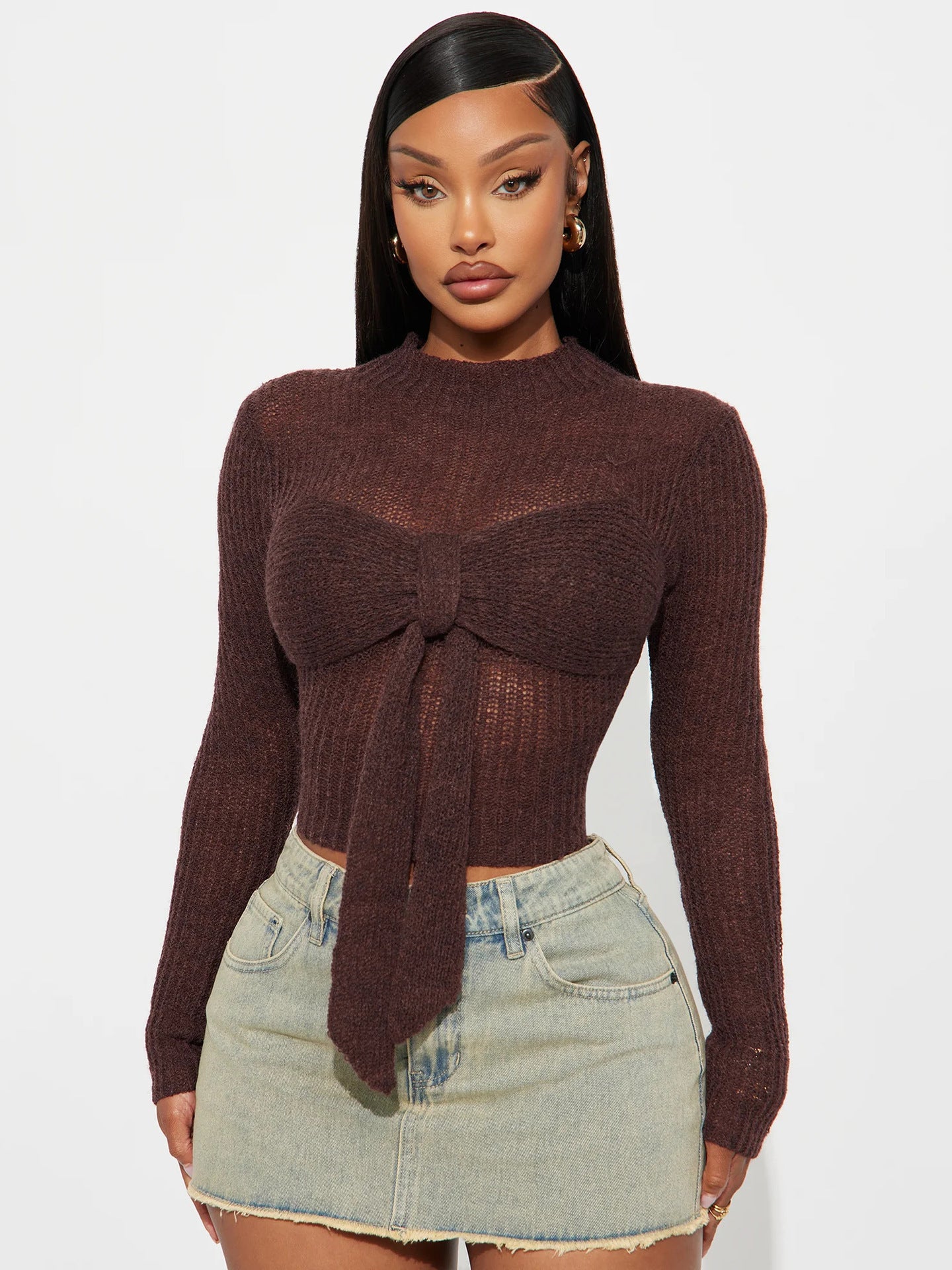Fashion Front Breast Bow Kinetic Sweater With Sexy Body-Renovation Hottie Light Ripe Wind Pure Desire HZ1208