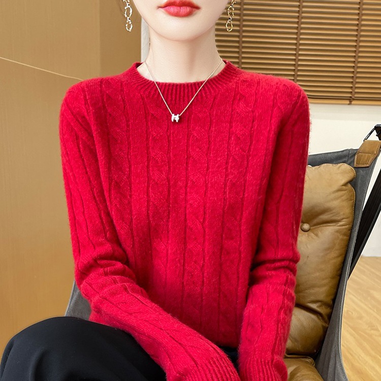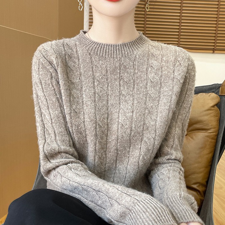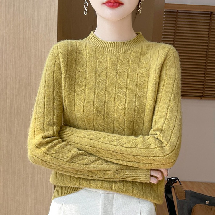 Korean Girl Feeling Jasmine Sweater Knitted Retro Collar Top Autumn And Winter Thick Bottom Shirt 2025 HZ1208
