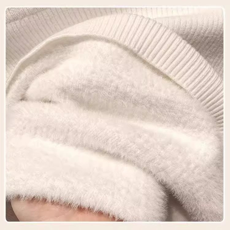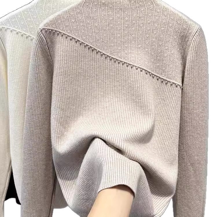 One-Piece Sweater Bottomed Women Set Warm 2025 Autumn And Winter New Plus Velvet Half-High Collar Temperament Top HZ1208