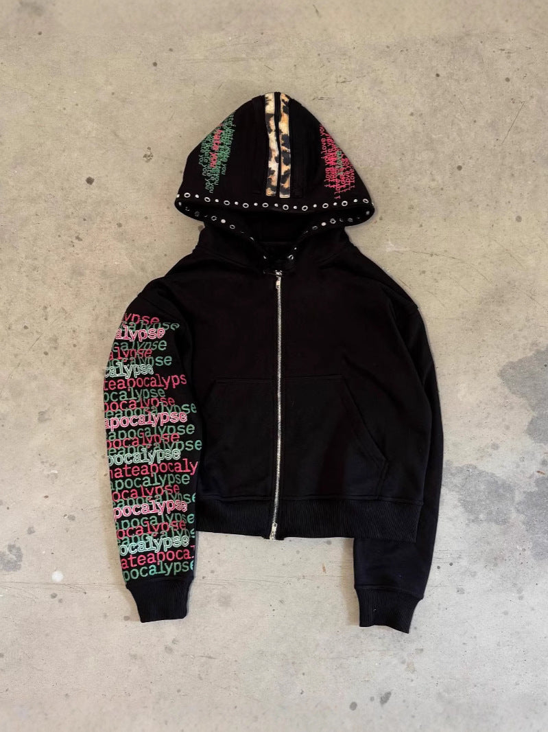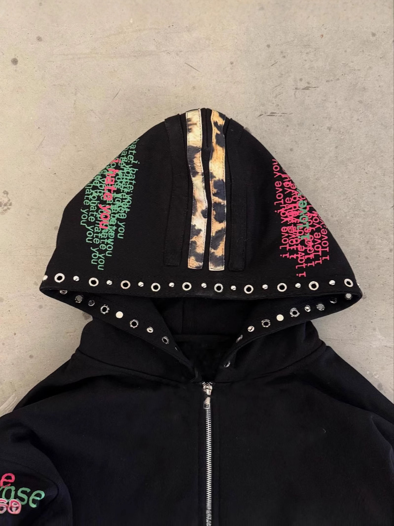 Y2K Street Retro Hoodie Loose Metal Decorative Zippered Sweater HZ1208