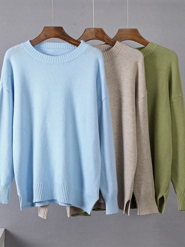 Autumn And Winter Explosion Of Women's Knitted Shirt Round-Neck Solid Color Loose Sweater HZ1208