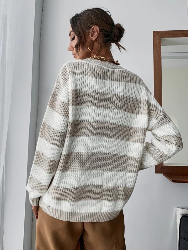 2025 Autumn And Winter New Personality Hit Color Knitted Shirt Color Stripe Loose Sweater HZ1208