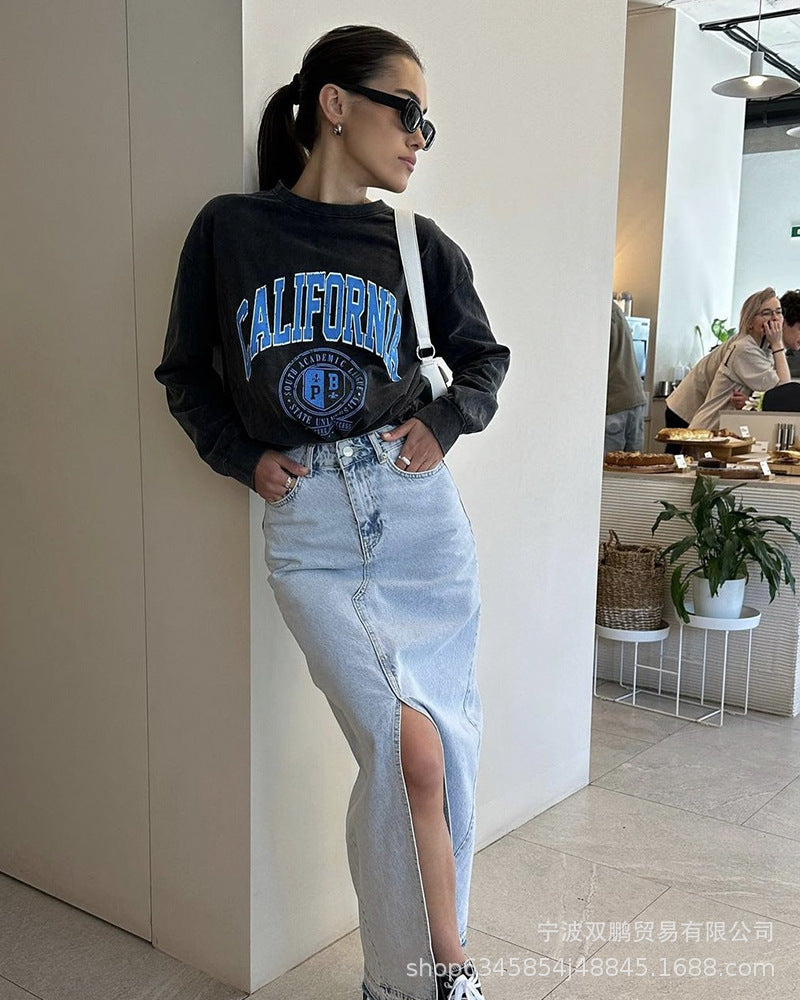 2025 New Long-Sleeved Snowflake T-Shirt Women's Summer Thin Carmeat Round-Neck Loose Temperament Shirt HZ1208