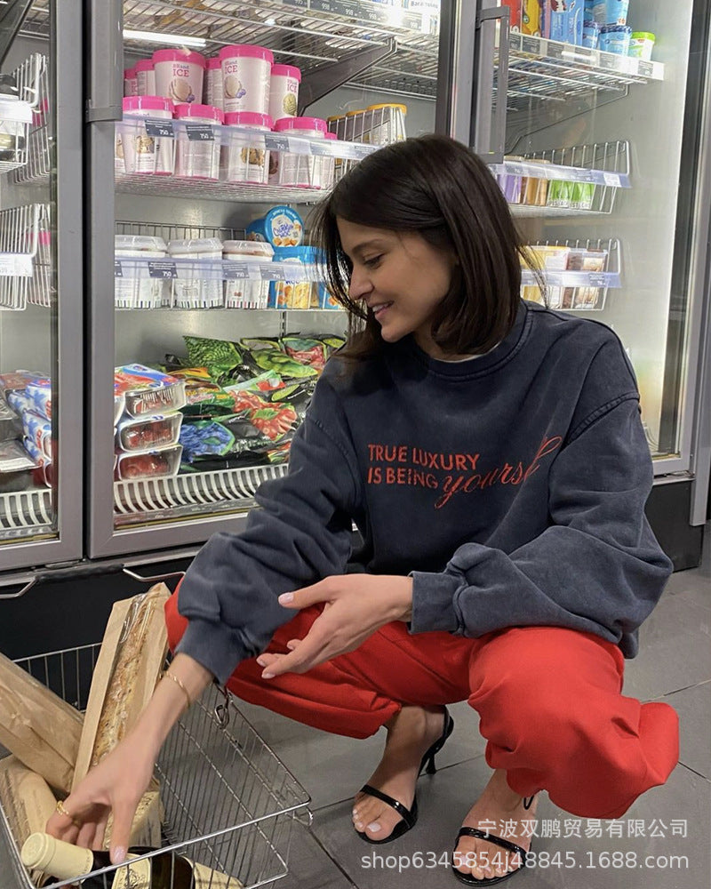 2025 Autumn And Winter New Pure Cotton Water Wash Old Sweater Women In Batik Retro Print Top Lady HZ1208