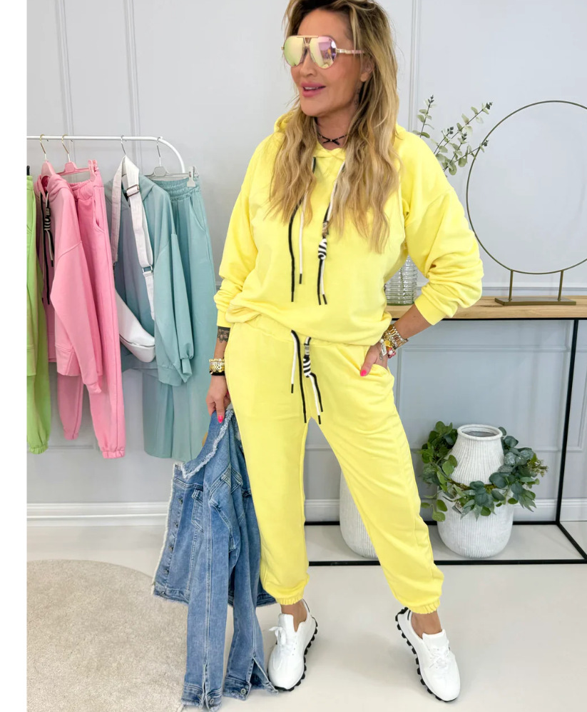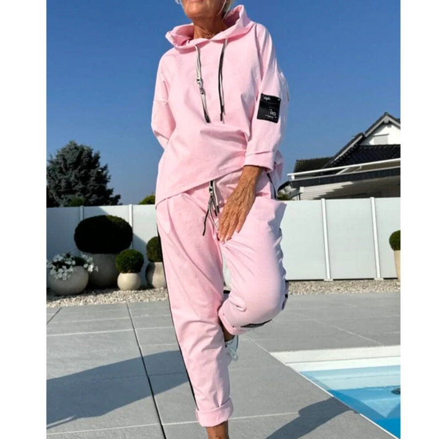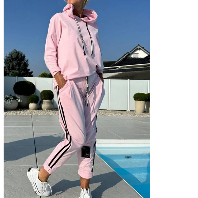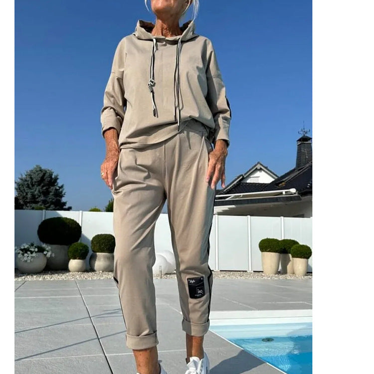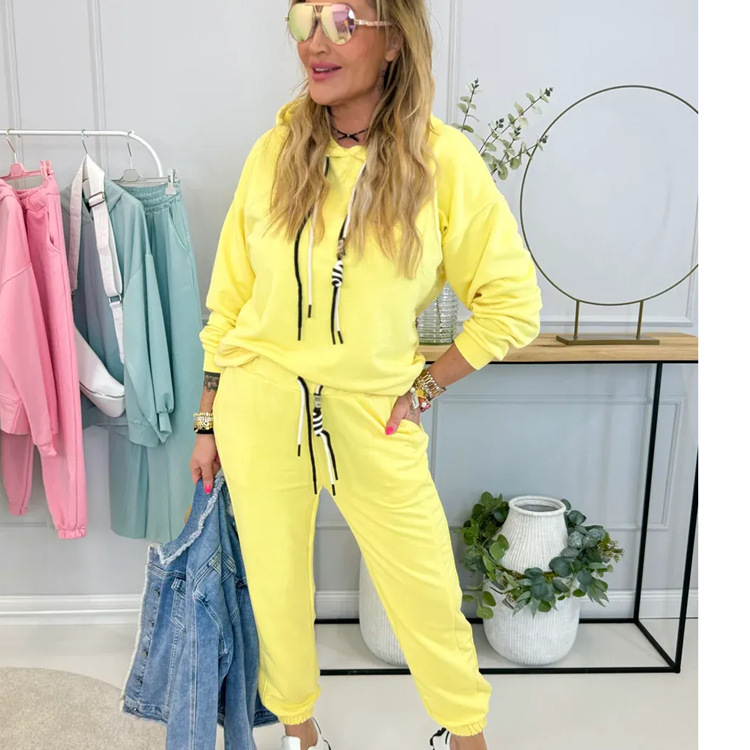 2025 Autumn And Winter New Women's Pure Color Round Neck Long Sleeves With Splicing Trousers Set Women HZ1208