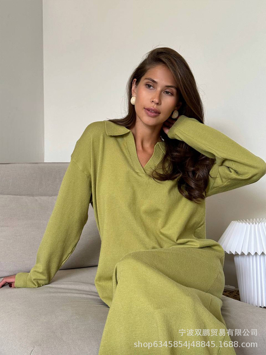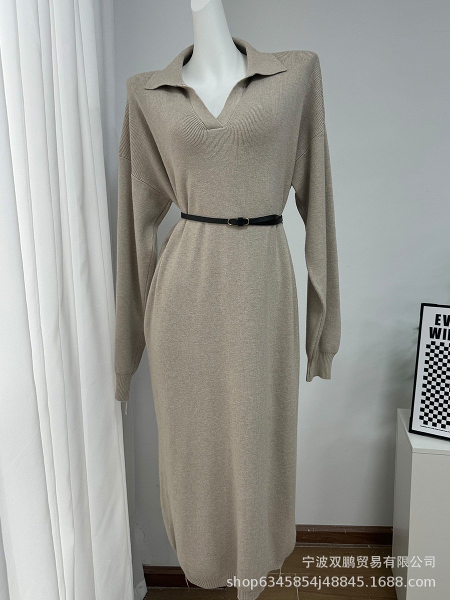 2025 Autumn And Winter Scissors Collar Soft Sweater Skirt Elegant Loose Dress In Style HZ1208