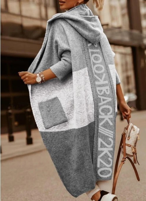 2025 Color Pocket Hooded Knitted Knitted Women's Long Cardigan Women's Coat Color Design HZ1208
