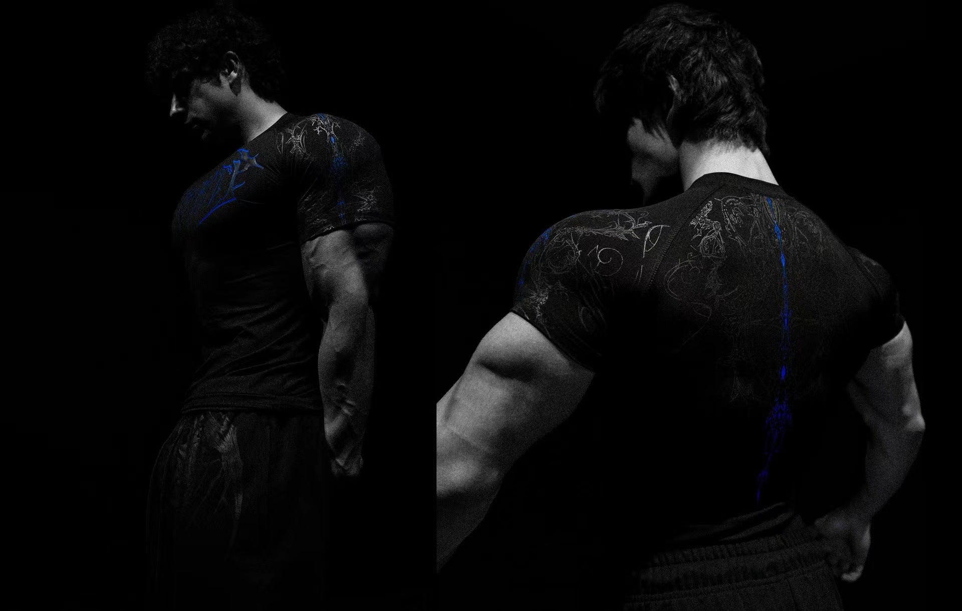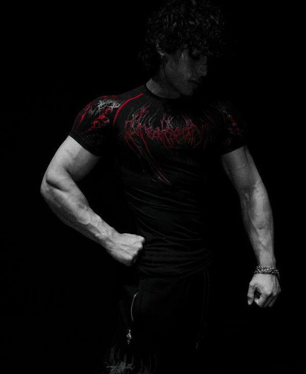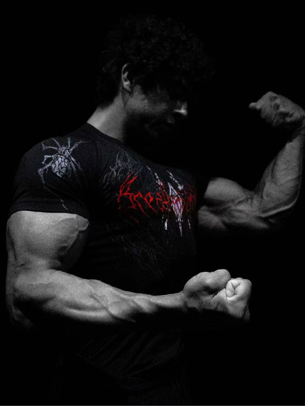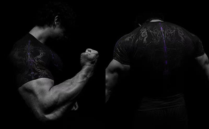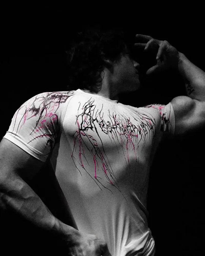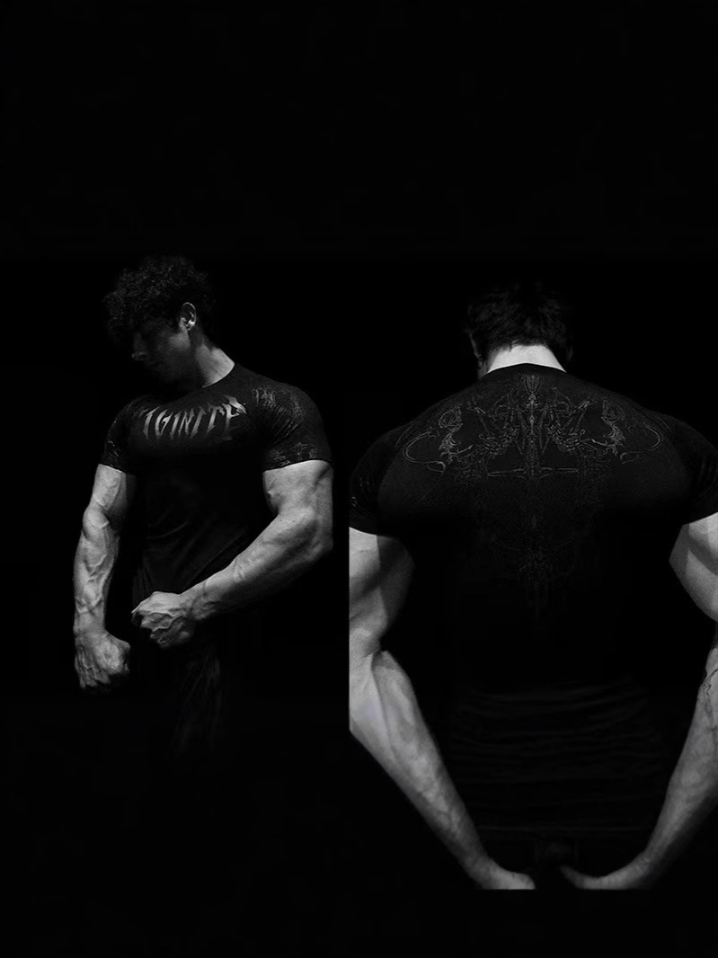 2025 Demon Line Manuscript Spider Before And After Printing Short-Sleeved T-Shirt Summer Tide Necker Men's Top HZ1208