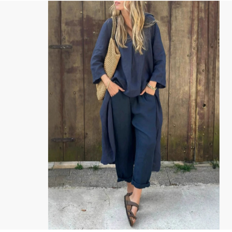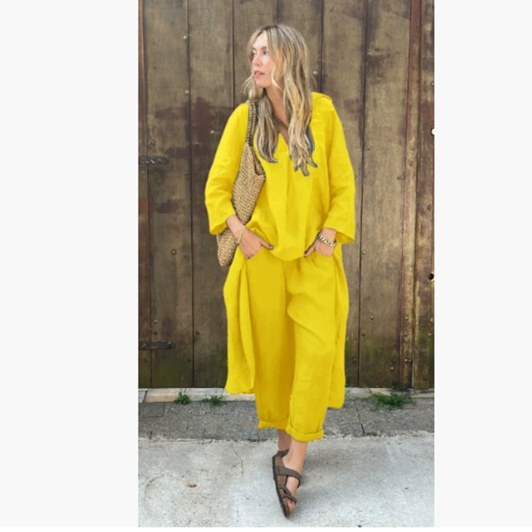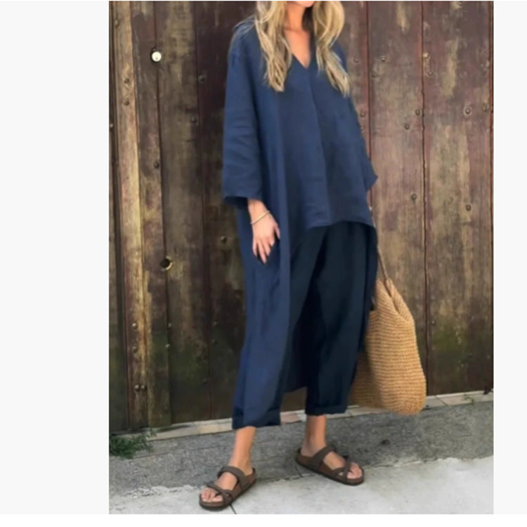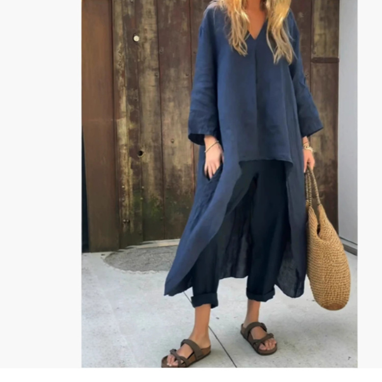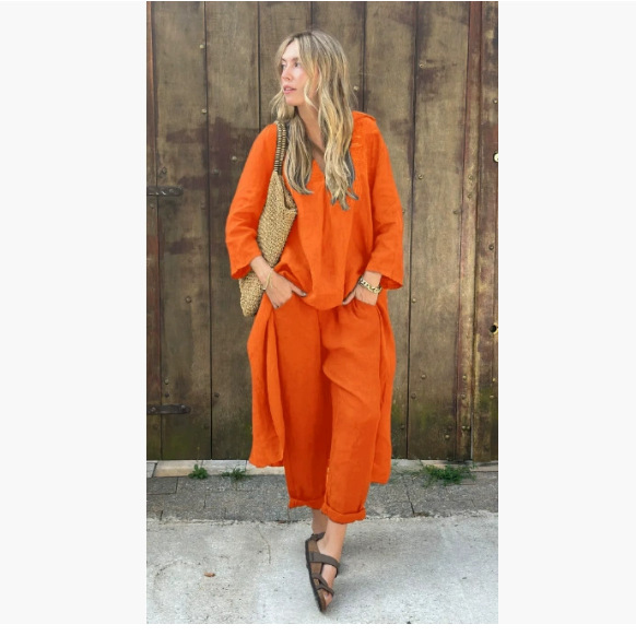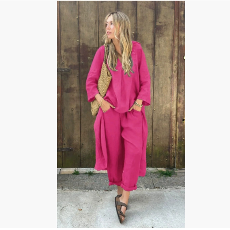 2025 Explosion Of Women's Summer Pocket V-Neck 2 Sets Of Solid Color Loose Women's Clothing HZ1208