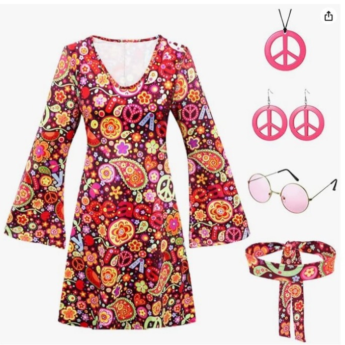 2025 Halloween 70S Hippie Disco Festive Dress Turban + Print Dress Two-Piece HZ1208