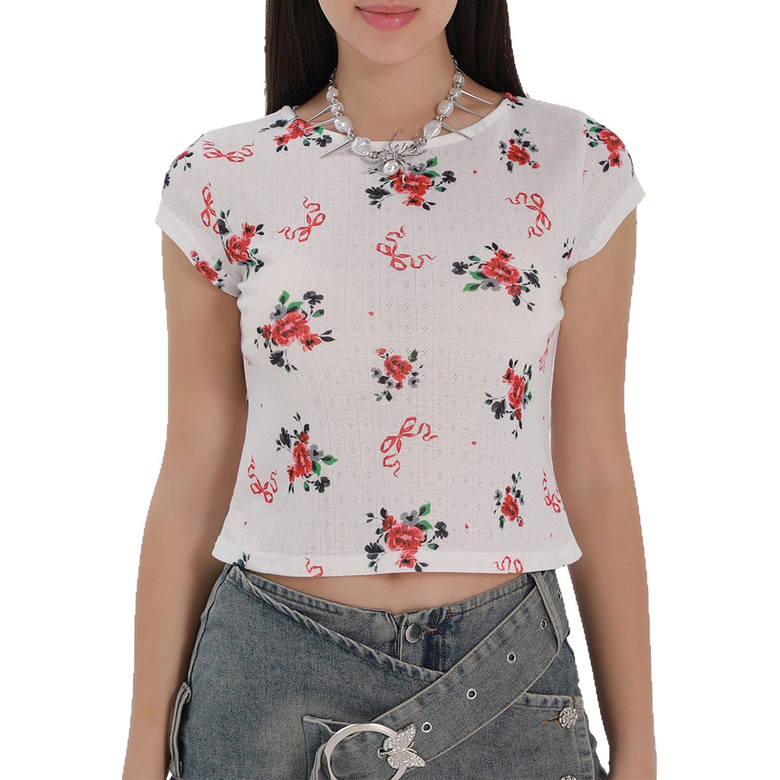 2025 New Flower Print Tender Girl Top Cute Sweet Lady Top Hottie Dress HZ1208