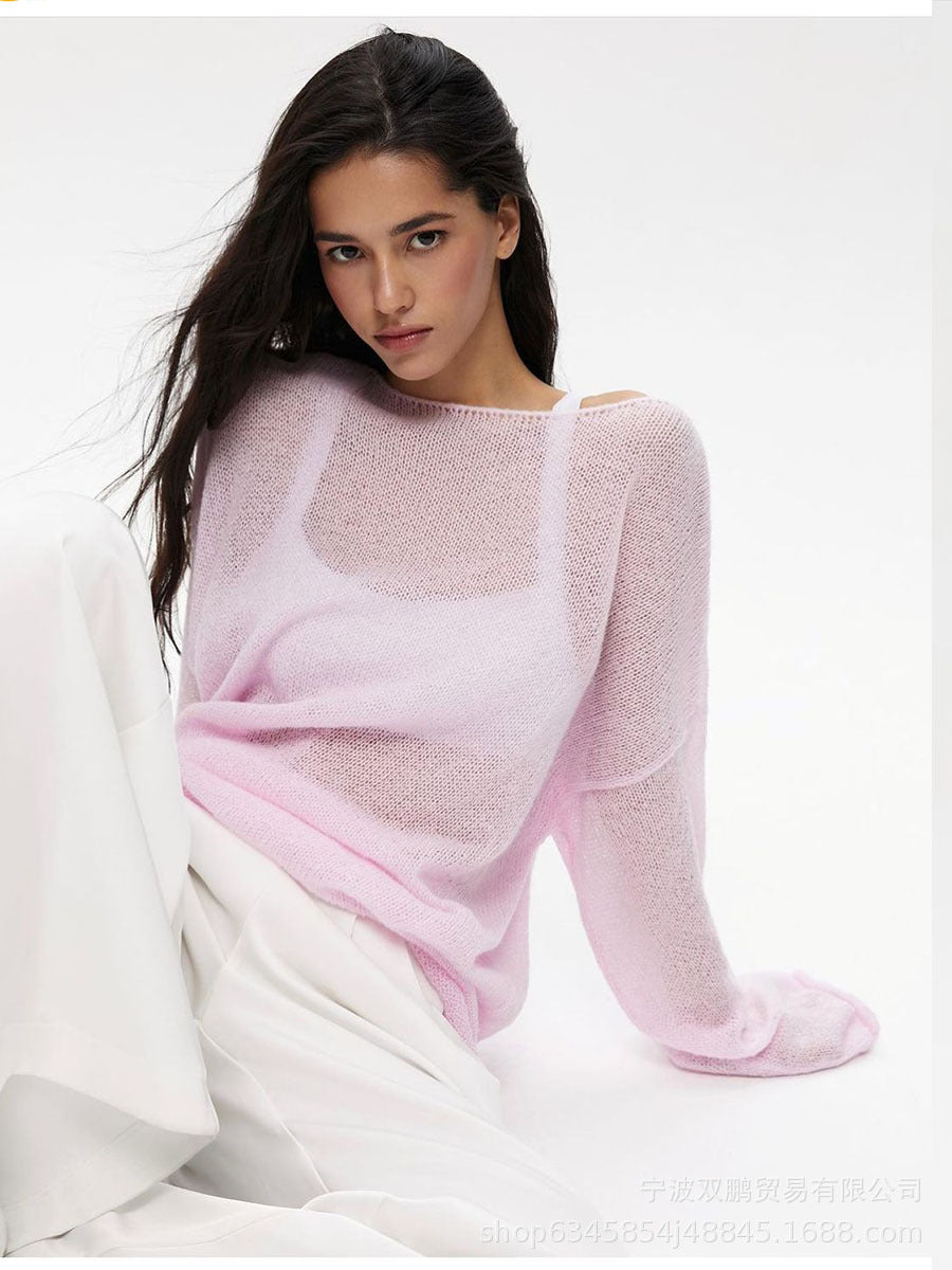 2025 Spring And Summer New Hollow Sweater Women Wind Soft Loose Knitted Long-Sleeved Clothing Hot HZ1208