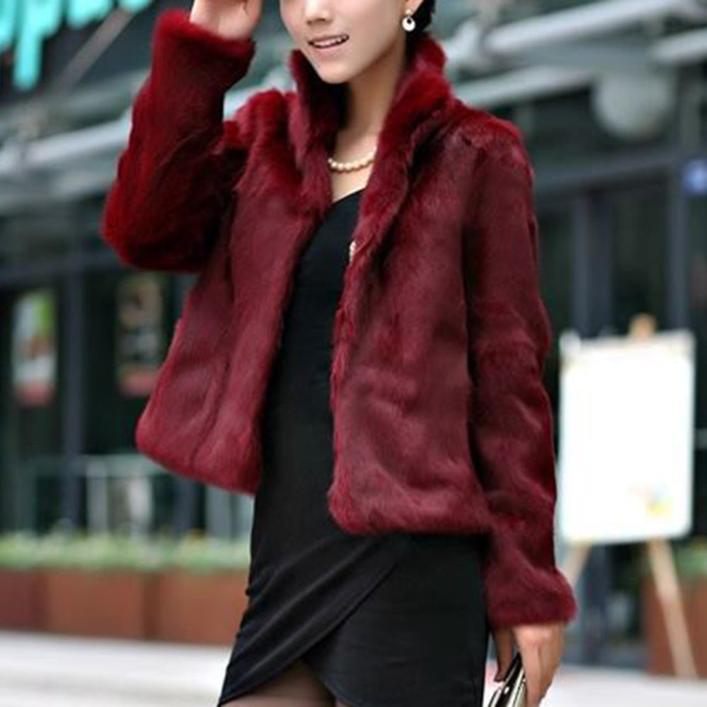 2025 Women's Winter Warm Imitation Kite Rabbit Wool Coat Plush Collar Imitation Fur Short Coat HZ1208