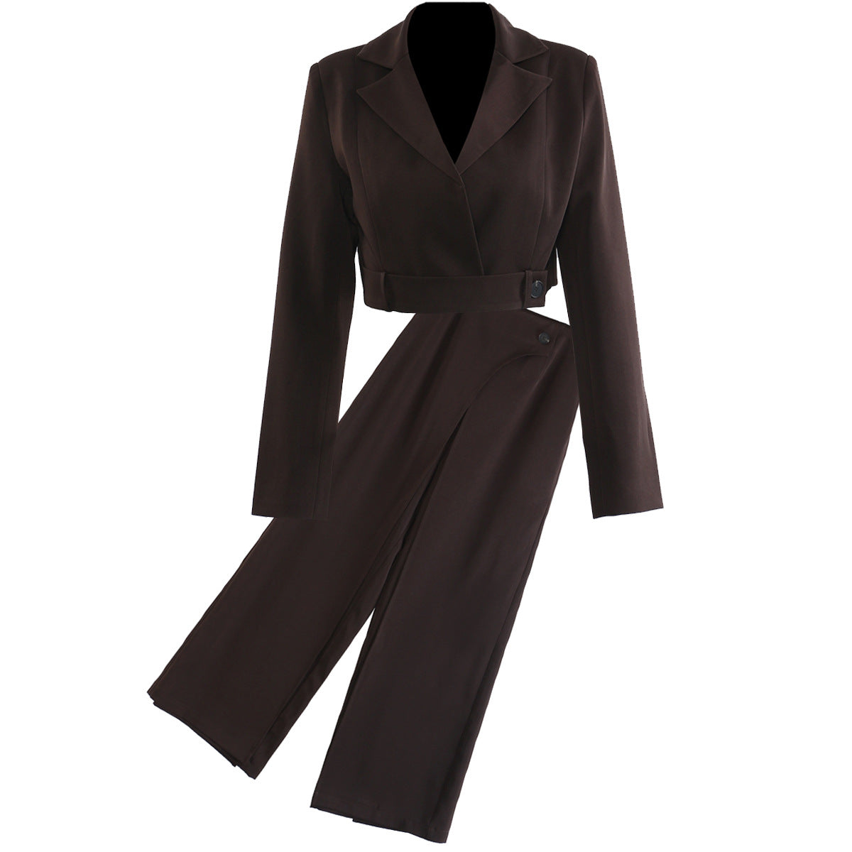 25 Autumn New Double Irregular Pants + Short Coat Top Fashion Casual Set Women 1815 HZ1208