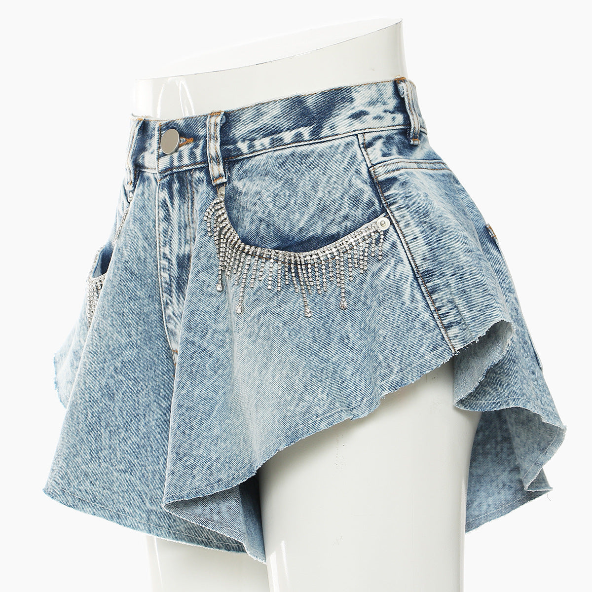 25 New Station Styling Lotus Leaves Side Hem Wide Legs Denim Shorts Hot Pants Fake Skirts 1565 HZ1208
