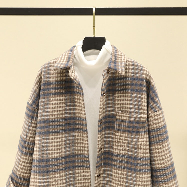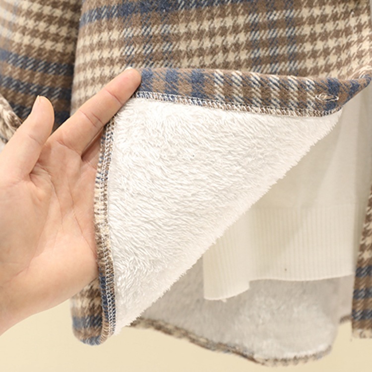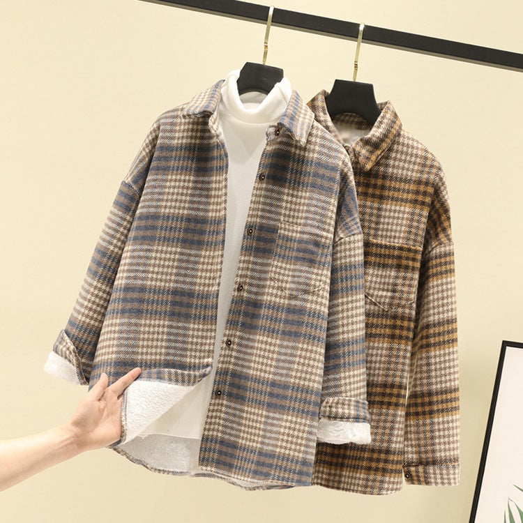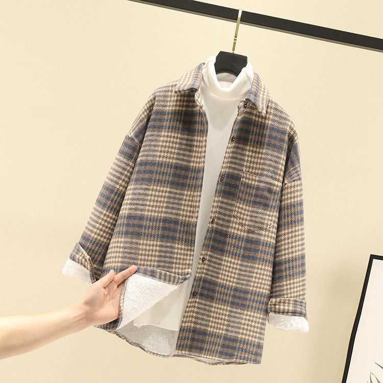 Add Thick Hair Coat Women 2025 Autumn And Winter New Shirt Port Loose Long-Sleeved Grinding Lattice Plus Velvet Shirt Woman HZ1208