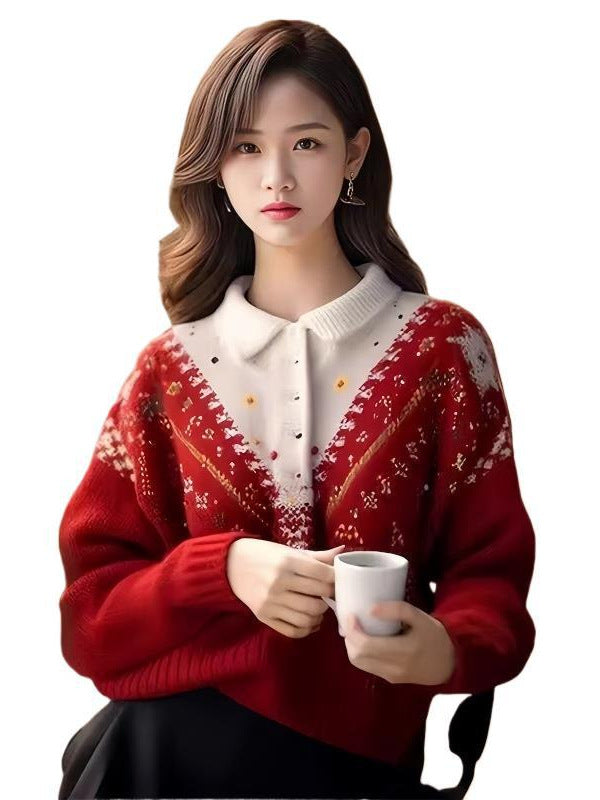 Autumn And Winter New Design Heavy Industry Hook Flower Wearing Alpaca Thick Sweater Senior Sense Loose Knit Shirt Top HZ1208