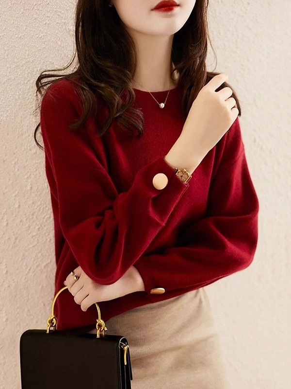 Bottom Sweater Women's Autumn And Winter 2025 New Knitted Knitted Winter Thick Loose New Year Red Chic Top HZ1208