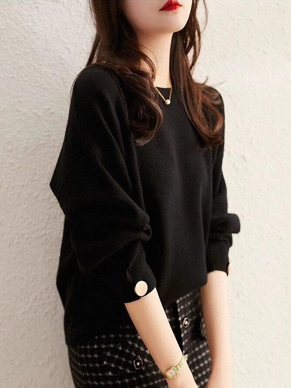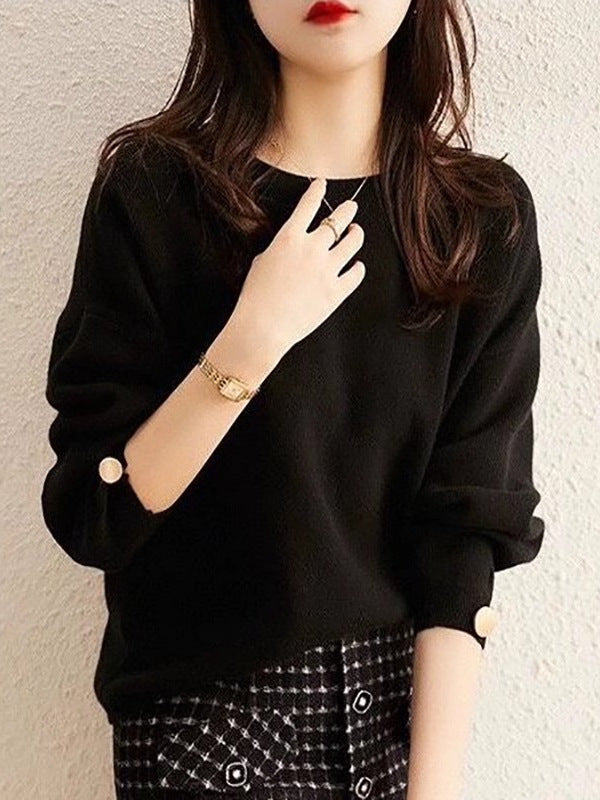 Autumn And Winter Explosion Of Women's Knitted Shirt Round-Neck Solid Color Loose Sweater HZ1208