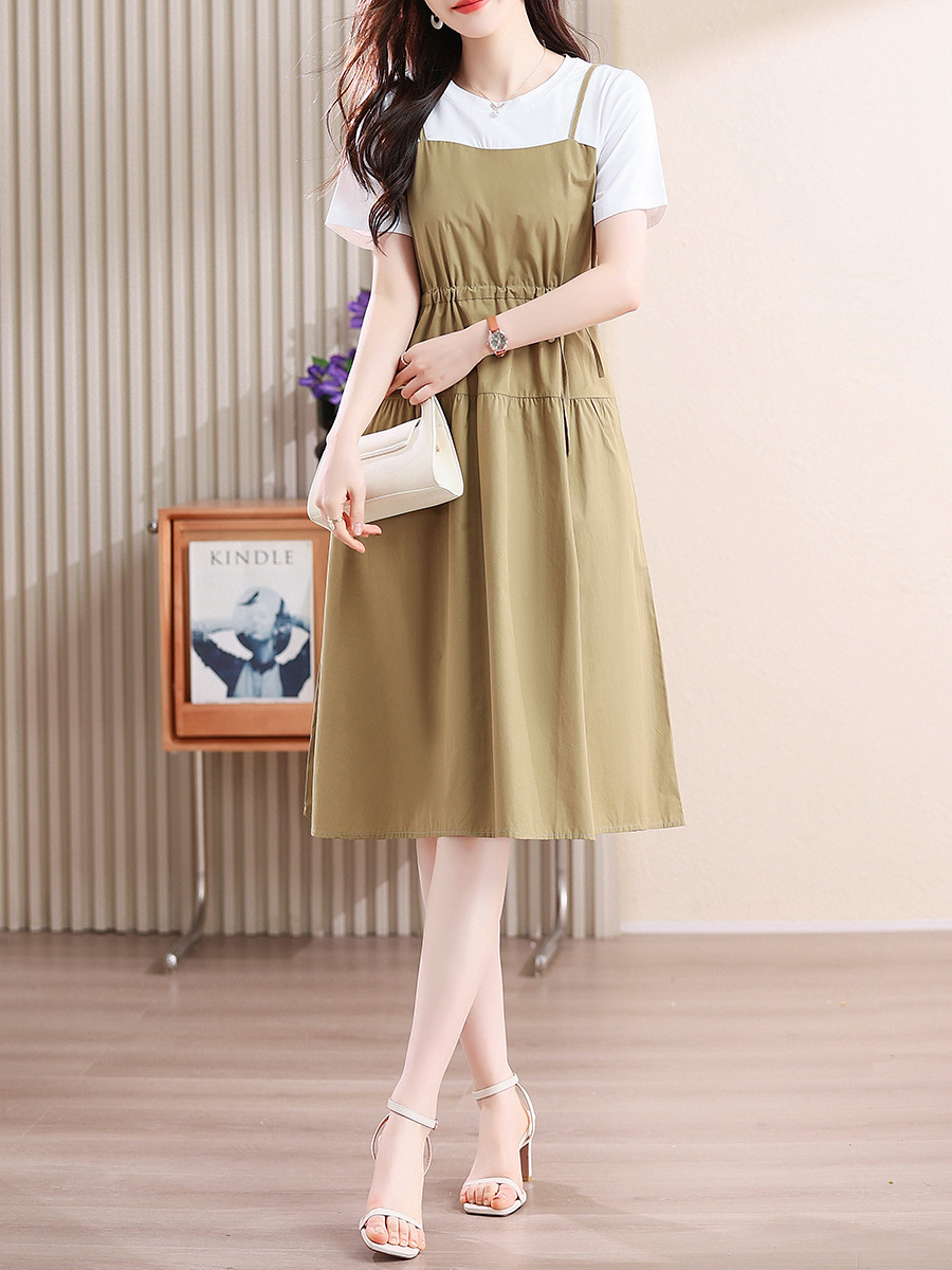 Casual Comfortable Coloring And Fake Two Dresses 2025 Summer New Casual Comfortable Stitching Design Dress HZ1208