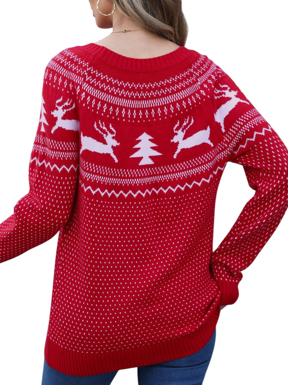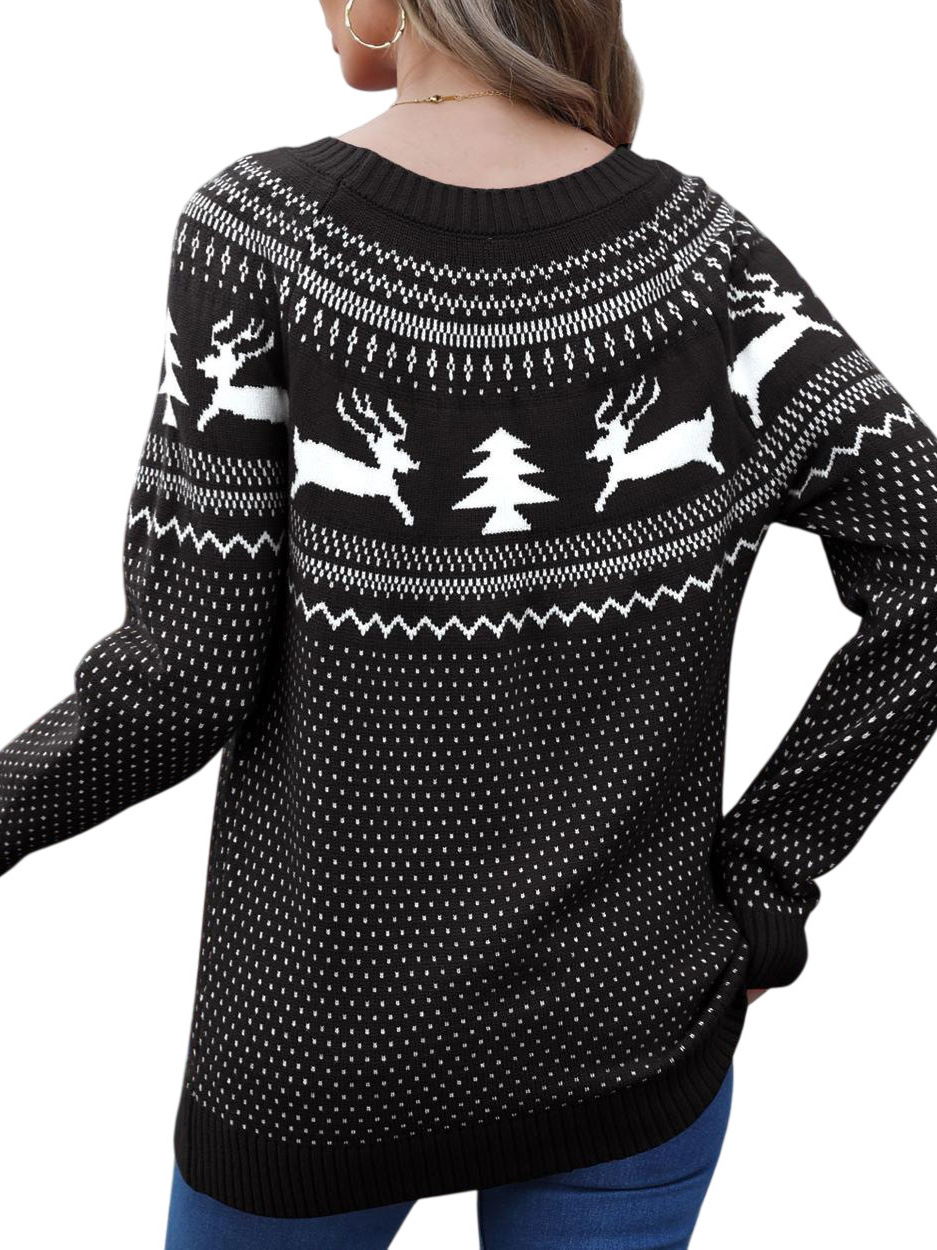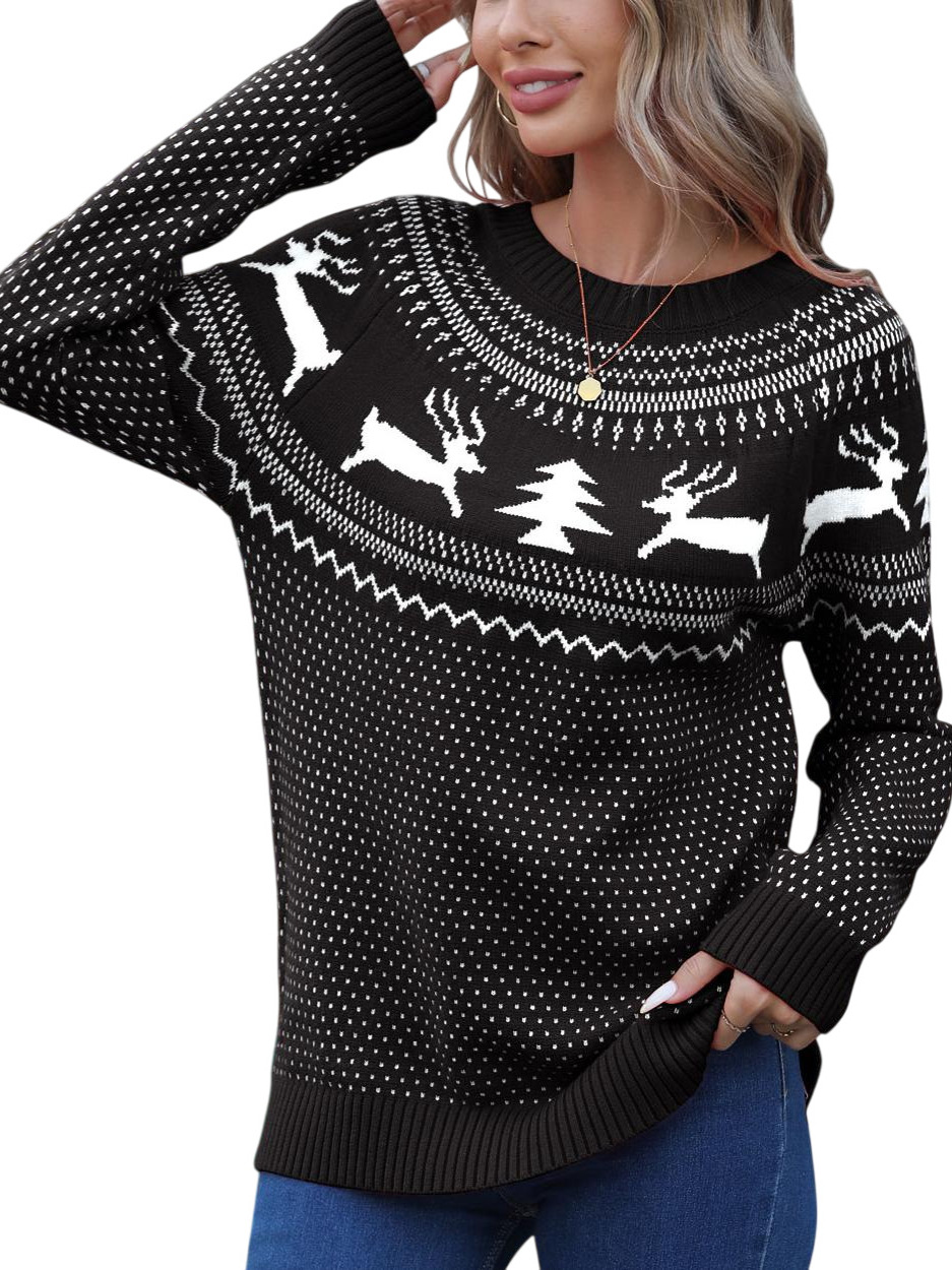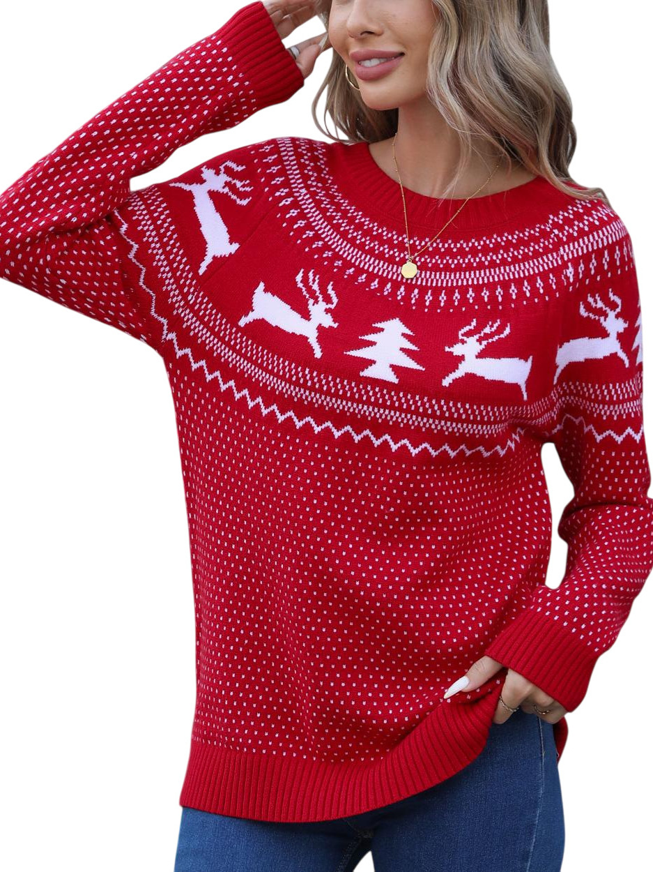 Christmas Sweater Women's Jabbing Autumn And Winter Loose Knitted Round Collar Casual Coat HZ1208