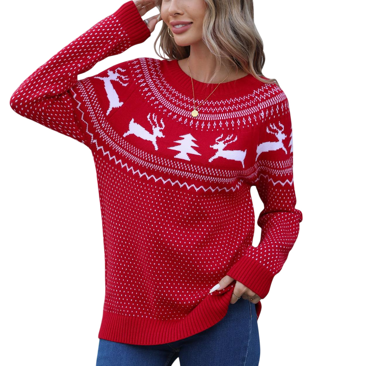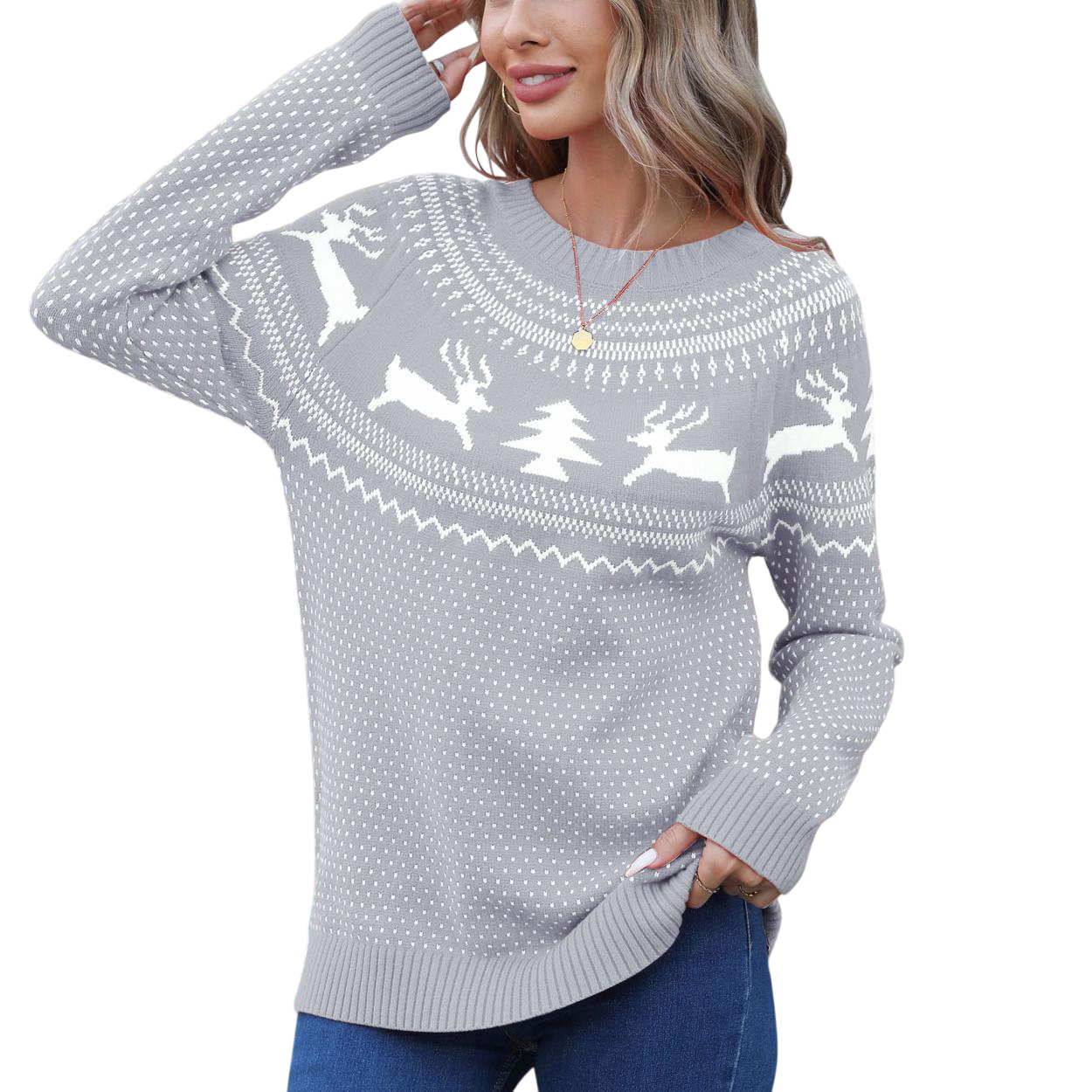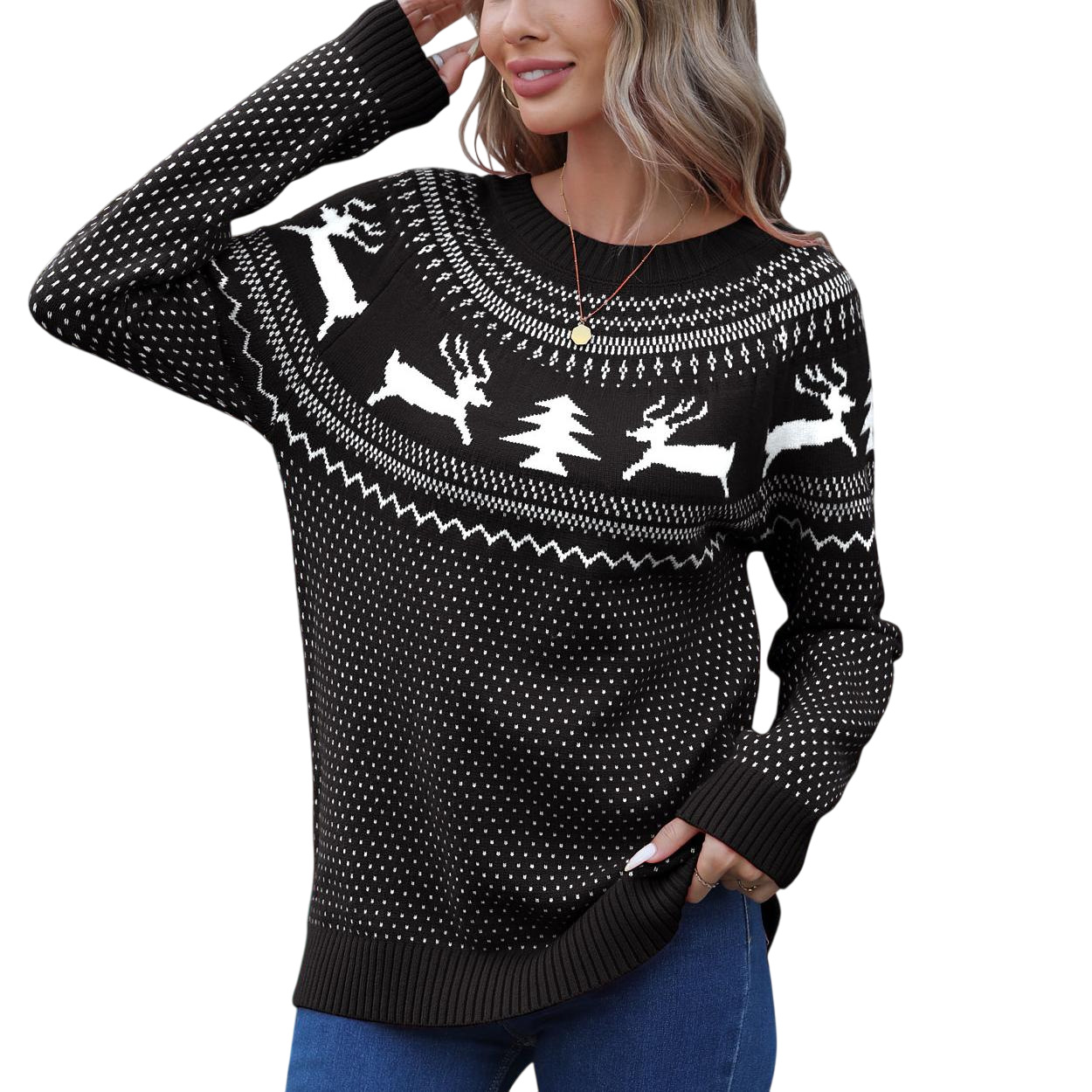 Christmas Sweater Women's Jabbing Autumn And Winter Loose Knitted Round Collar Casual Coat HZ1208