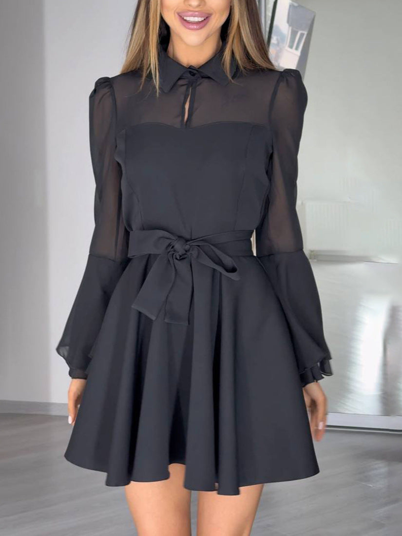 Explosion Net Horn Sleeve Dress Belt Design Black And White Multi-Color Elegant Famous Short Skirt HZ1208