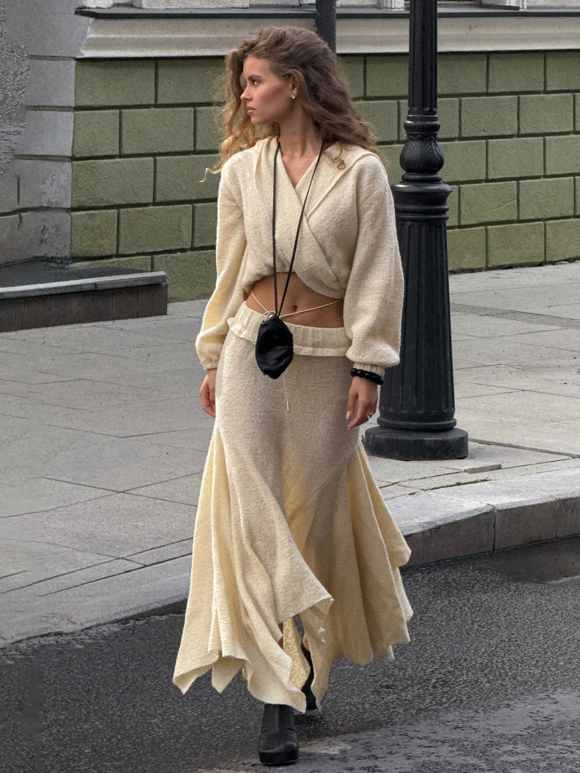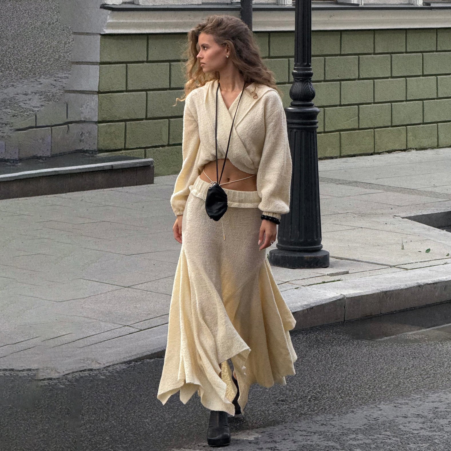 Fashion New Towel Fabric Dress Personality Design Sense Of High-End Waist Sealing Solid Color Skirt HZ1208