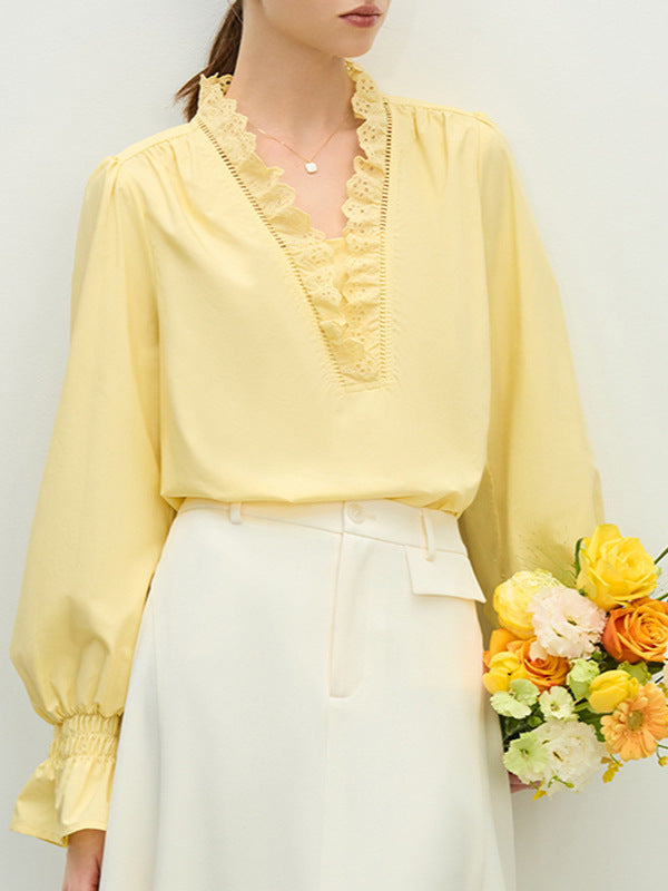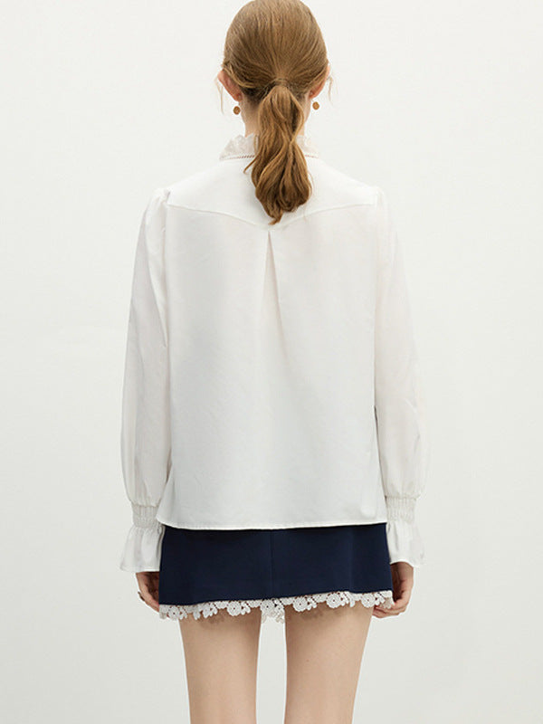 French Temperament Lace Lace V-Neck Shirt Women's Spring 2025 Design Sense Niche Elegant Loose Coat HZ1208