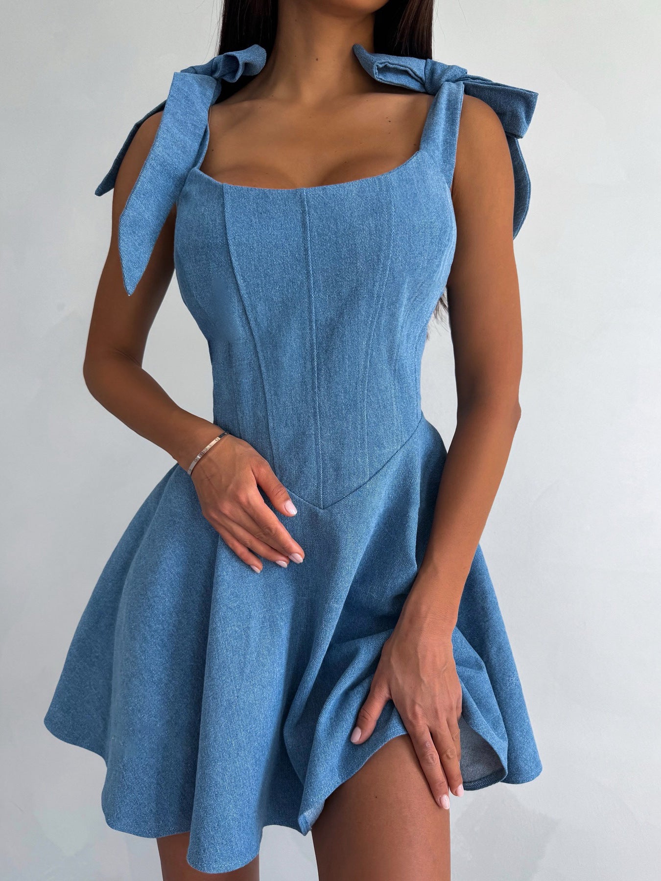 High-End Feeling Autumn And Winter Dress Blue Fish Bone Waist Sexy Hottie Cowboy Vest Dress Autumn Winter HZ1208
