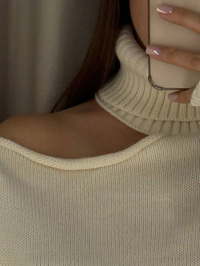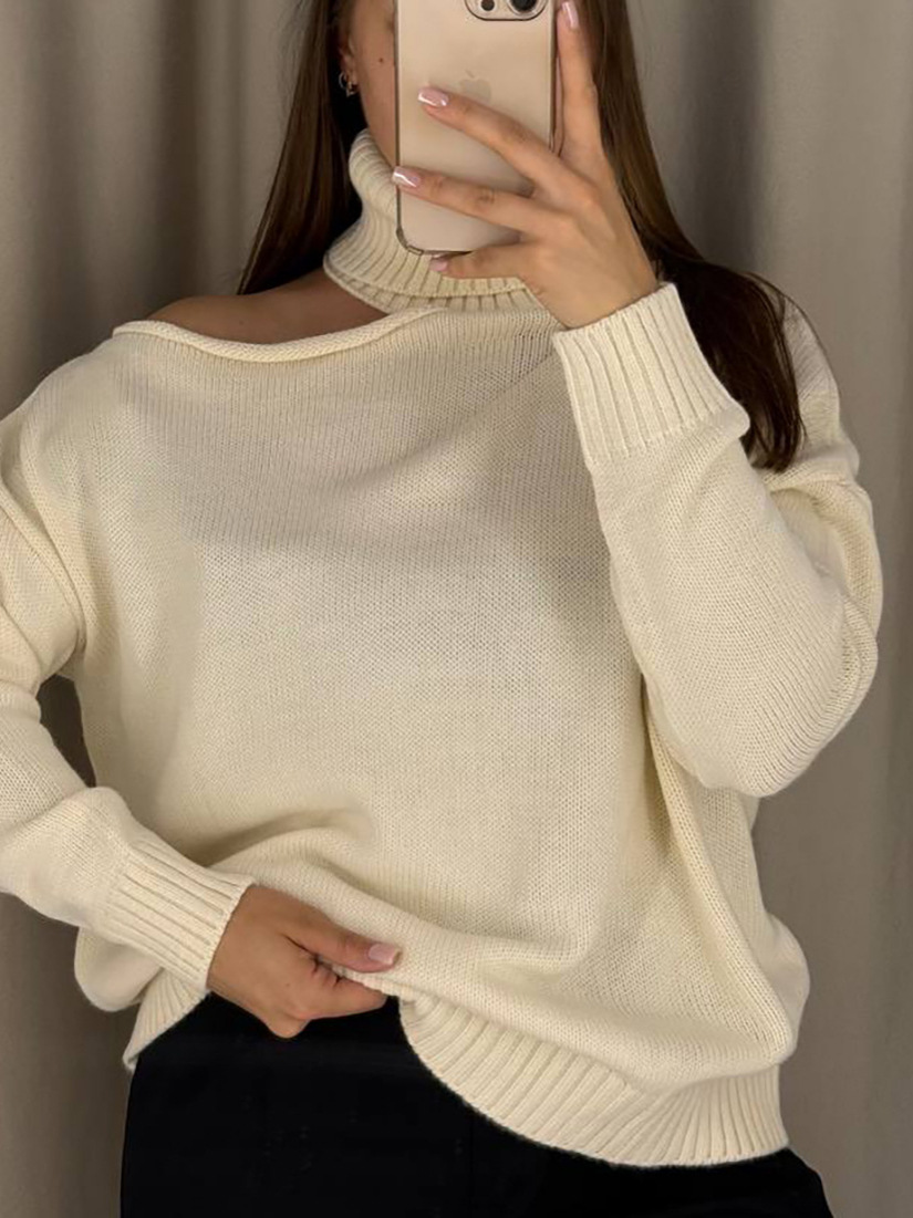 Must Enter The High-Collar Shoulder Sweater Unique Asymmetric Design Gentle Apricot Gray Color Optional Autumn And Winter Atmosphere HZ1208